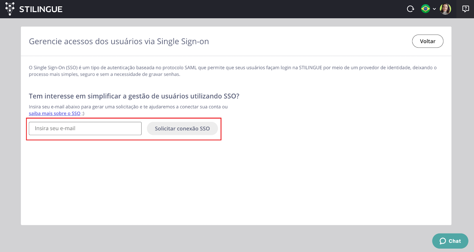SSO - STILINGUE May 08, 2024 12:31 Updated Index: Introduction What it is and how it works Multiple advantages Access request Introduction Learn how the technology that provides enhanced security in managing your team's access works. In line with best practices in information security, STILINGUE introduces a single sign-on system that ensures more reliability and convenience for managing your company's access: Single Sign-On (SSO). What it is and how it works The term Single Sign-On (SSO) can be translated as "Single Login" and summarizes the primary application of this technology, which was created to centralize access to different tools in a single environment with just one login. As a result, SSO is adopted as a solution by companies to manage the various logins and passwords of their employees in these tools. The SSO technology uses the SAML protocol, which is a markup language for security authorization. SAML allows integration of STILINGUE with other tools used by clients and providers in the market, enabling these different systems to "communicate" with each other. In practice, the user can connect to the STILINGUE platform more easily through an authentication system adopted internally and approved by your company's Information Security team. Multiple advantages The adoption of SSO is beneficial both for the company and for the users. For the company, the main advantage is greater data security and control over who can or cannot access the tool. As for the user, they benefit from an optimized experience, as the technology eliminates the effort of managing and remembering different logins and passwords for the accessed tools, in addition to providing additional layers of security to the company's internal authentication system. In addition to the benefits listed above, it's important to highlight other points of interest for companies: Reduction of manual work in access management: In the onboarding process of an employee, simply adding the user's email to the Identity Provider group grants access. It will be necessary to remove the same email during offboarding for the employee to no longer have access to STILINGUE and other tools. Reduction of effort in password management: The process of creating and changing login/password becomes simpler with SSO and follows the company's internal procedures, eliminating requests for new passwords from STILINGUE. Meets security requirements: The adoption of SSO is already a market trend and one of the main security requirements when procuring tools for large companies. Attention! Currently, it is not possible for a user of an account with active SSO to invite another user who does not have active SSO to your user group. If it is necessary to send an invitation, it is suggested that SSO be temporarily deactivated to invite the user and then reactivated. Access request If you are interested in using or learning more about how to use SSO in your STILINGUE operations, simply make a request through the platform. To do this, click on the "Single Sign-on" option in the sidebar located in the upper right corner of the screen: By clicking on the "Single Sign-on" option, you will be redirected to a new page where you can make the request to use SSO. Leave a contact email in the indicated field and click the "Request SSO Connection" button. For more information, visit the discussion on the subject at our community or videos on our channel. 😃 Related articles How to Create and Approve a Message Template in WhatsApp Custom Breaks Dashboard - Date Filter & Comparison Indicator Managing Access Permissions How to create blocks in Builder