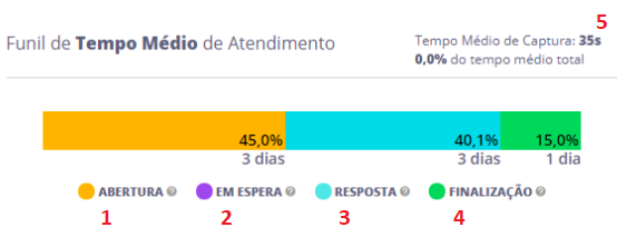 Average Response Time Funnel - Ticket Report & Annotations September 26, 2024 14:03 Updated Find important data for your ticket analysis on STILINGUE Smart Care By accessing the Report through the tab, you can locate among the tickets provided by your team, changes in the status of conversations, number of closed tickets in relation to time and several other graphs. Follow the graph Average Response Time Funnel The graph shows how much time was spent for conversations to move through these statuses: 1. Opening Average time (in minutes) it takes to transition from Pending to Open status. 2. Pending The average time (in minutes) it takes for a conversation to go from Pending, Open, or Responded to On Hold. 3. Response Average time (in minutes) it takes for a conversation to move from Pending or Open to Responded. 4. Closing Average time (in minutes) it takes for a conversation to move from Pending, Open, or Responded to Closed. 5. Average Capture Time Average time the system takes to capture an interaction. For more information, visit the discussion on the subject at our community or videos on our channel. 😃 Related articles How to verify the AI provider settings Average Ticket Handling Time - Ticket & Annotations Report Sending WhatsApp Active Messages on Blip Desk FAQs - STILINGUE Studio Access - Ticket & Annotations Report