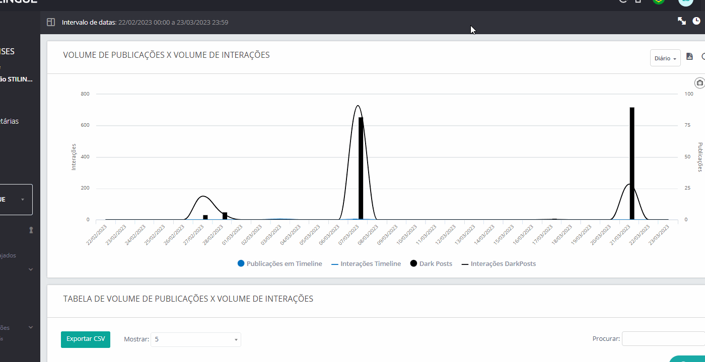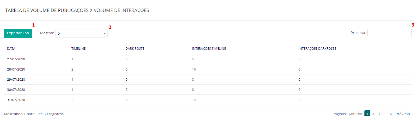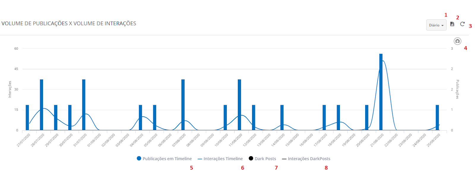 Publications x Interactions - Facebook February 15, 2024 12:46 Updated Index: Publications x Interactions Chart Zoom Table Compare organic and paid posts on your page and analyze the interactions on each one. When accessing Proprietary Metrics, you will find charts that can assist in your analysis of the content published on social media. To access, go to Publications x Interactions, on my side: Publications x Interactions Chart 1. Chart period Visualize the graph data by selecting whether the information appears per day, week, or month. 2. Export Report Export the charts and the table with the results. Here, it is also possible to export the table separately. 3. Reload card Refresh the chart information so that the most recent data is displayed. 4. Export Button Export the chart by choosing between the image and various formats. 5. Posts on Timeline Organic posts that appear on the timeline of the platform user, without boosting. 6. Interactions Timeline Quantity of reactions (like, love, among others), comments, and shares made organically on posts. Note: the quantity of interactions considers the total number of reactions, instead of counting only likes on posts. 7. Dark Posts The dark post represents a type of paid post within the social network itself that is sent/displayed to a specific group of users. This same post does not appear on the timeline of other pages and profiles, as it has been targeted. 8. Interactions Dark Posts Sum of interactions (reactions + comments + shares) made on paid posts. Note: the caption can be deactivated, displaying only the data you consider relevant at the moment. By clicking on the legend criteria, it turns gray, and the other points are highlighted. Zoom You can click on any point on the graph and be redirected to Zoom. This area will enlarge and show the graph's data in detail. Table 1. Export Export the content in CSV format through the table. 2. Show You can choose to view between 5 and 100 pieces of data at once. 3. Search Search for the numbers presented on the graph using the field. For more information, visit the discussion on the subject at our community or videos on our channel. 😃 Related articles Sending WhatsApp Active Messages on Blip Desk Dashboard - Conversational Flow Active Messages - Error Codes Data Collected from Facebook - Proprietary Metrics Hubspot Integration - Service History