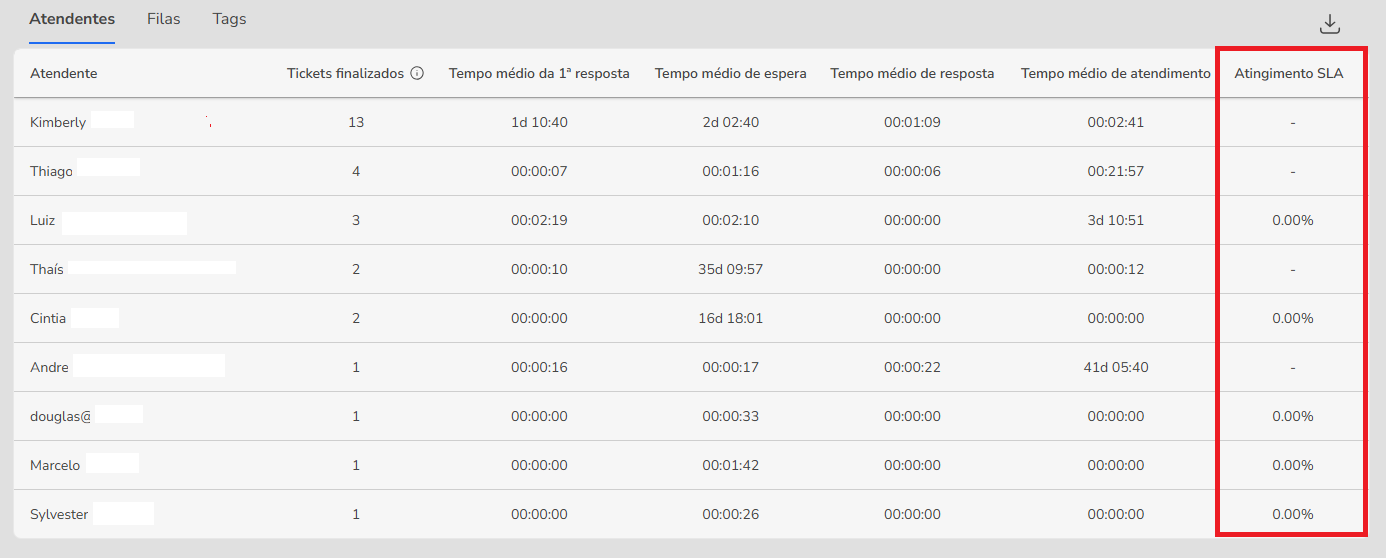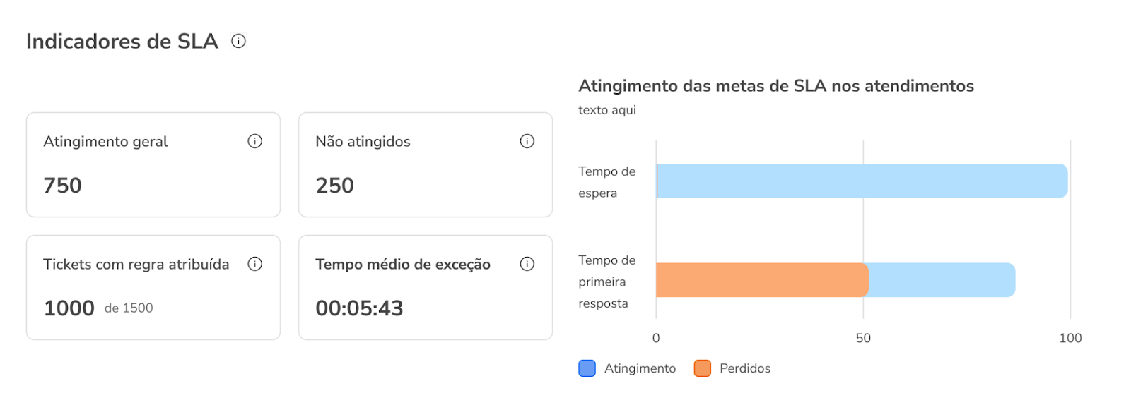 SLA Rules June 02, 2025 16:34 Updated Index What is it and what is it for? How to configure an SLA rule? Real-time monitoring Performance analysis (Service Report) Ticket-based analysis (Service History) How are SLA indicators calculated? What is it and what is it for? SLA rules are sets of time-based goals that you can configure to track whether your operation’s deadlines are being met. Within an SLA rule, you can set achievement targets for one or more operational metrics: waiting time (TME), first response time (TMR1), and handling time (TMA). Each SLA rule must be assigned to at least one queue and can be set as the default for all queues. When you configure an SLA rule, Blip automatically compares the actual ticket times with the targets you’ve set. This allows you to generate visual alerts and detailed reports about your team’s performance against the established goals. IMPORTANT: This feature is currently available in Beta. If you’re interested in participating in the testing, please contact the CSM responsible for your account. How to configure an SLA rule? Access the Blip Portal; Select a service bot; Go to the "Service" tab; Open the "SLA Rules" menu; Click "New Rule"; Give your SLA rule a name; Select the queues where the rule will be applied (or leave it as the default rule for all queues); Enable the metrics you want to track: Average Waiting Time (TME) Average First Response Time (TMR1) Average Handling Time (TMA) Set the target time for each selected metric; Save the configuration. Done! From now on, you’ll be able to monitor the achievement of the expected times for the main operational metrics. See below an example of the SLA rule creation screen. IMPORTANT: Although you can create multiple SLA rules, only one rule can be applied per queue. All tickets directed to a queue with an assigned rule will be evaluated based on the targets defined in that rule — it’s not possible to disable a rule (or its targets) for individual tickets. Real-time monitoring Whenever a ticket exceeds an SLA target, it will be visually highlighted on the monitoring screen. The highlight appears over the specific metric that was exceeded ("Time in Queue," "First Response Time," or "Handling Time"). You can view the notification in the ticket details section, under the "Assigned/In Progress" and "Tickets in Queue" tabs, as shown in the image below: The visual notification for assigned tickets without a first response from the agent will still appear highlighted in the monitoring screen, but in yellow and only over the "Handling Time" column, as long as the status text "Waiting" is displayed: Performance Analysis (Service Report) The SLA tracking section, available in the service report, gathers indicators that help managers monitor the operation’s performance against the configured targets. In this section, you can clearly view: The overall SLA achievement rate; Tickets that did not meet the defined targets; Tickets with an assigned SLA rule; Average exception time; SLA target achievement by metric type (Waiting Time, First Response Time, and Handling Time). See below the SLA tracking section within the service report. This view allows managers to quickly identify bottlenecks in the operation and make strategic decisions based on this data. In addition to the overall view by queue and by metric type, the service report also displays the SLA achievement rate by agent. This way, besides the general overview, managers can also track the individual performance of the team in relation to the configured rules — identifying who is meeting expectations and who might be facing challenges. TIP: In addition to the achievement rate shown in the "Agents" section, it is possible to view more detailed individual performance of agents or by queues in the SLA indicators section by applying a filter and selecting a specific agent or queue: With this data, it is possible to provide more precise feedback, offer personalized support, or reassess the distribution of tickets among agents. Ticket-based Analysis (Service History) In addition to real-time visual alerts and performance views by team or agents, it is also possible to check how a specific ticket performed against the SLA rules in the service history. This ticket-based view allows you to understand, for example, which targets were met or missed in each service interaction, what the actual time recorded was compared to the configured target, and at which point in the flow any excess occurred. With this, the manager can analyze specific cases more deeply, support feedback conversations, investigate process deviations, and justify operational decisions based on objective data. How are SLA indicators calculated? Overall Achievement: Count of tickets with an assigned and active SLA rule that met ALL THE TARGETS defined in the rule.For example: In a certain queue, an SLA rule is assigned with time targets for Waiting (10 minutes) and First Response (3 minutes). Three tickets from this queue were handled during the day, as shown in the table below. Ticket Number Waiting Time First Response Time #00001 00:07:00 00:02:57 #00002 00:11:00 00:00:52 #00003 00:08:13 00:03:49 Notice that ticket number #00001 met the waiting time and first response time targets. Ticket number #00002 exceeded the waiting time limit, and ticket #00003 exceeded both targets (waiting time and first response).Thus, the count of tickets that met 100% of the defined rules (overall achievement) would be 1 (ticket #00001). Not achieved: Count of tickets that exceeded at least one of the targets defined in the assigned SLA rule (this indicator is the exact opposite of the previous one).For example: Considering the previous scenario, the count of tickets that did not meet SLA targets would be 2 (tickets #00002 and #00003). Tickets with assigned rule: Count of tickets handled in queues where an SLA rule was configured and active.For example: Suppose a service operation has two different 