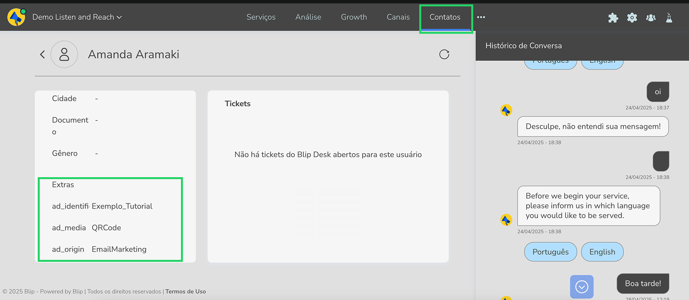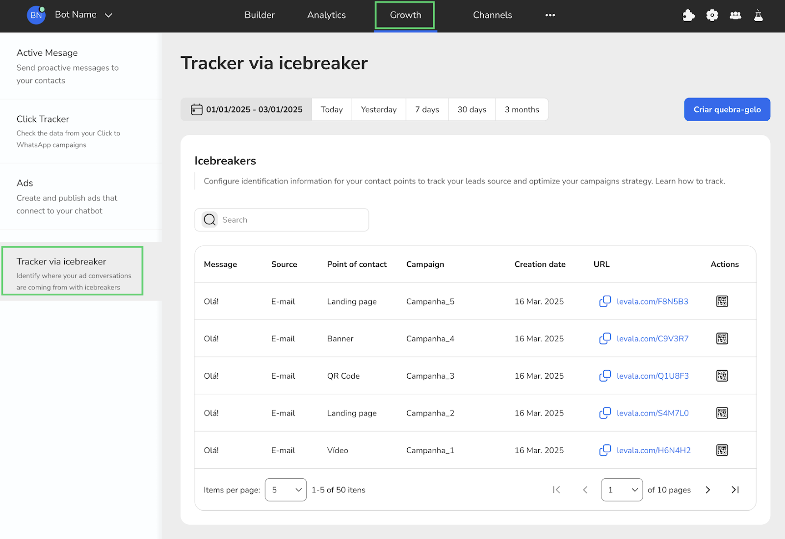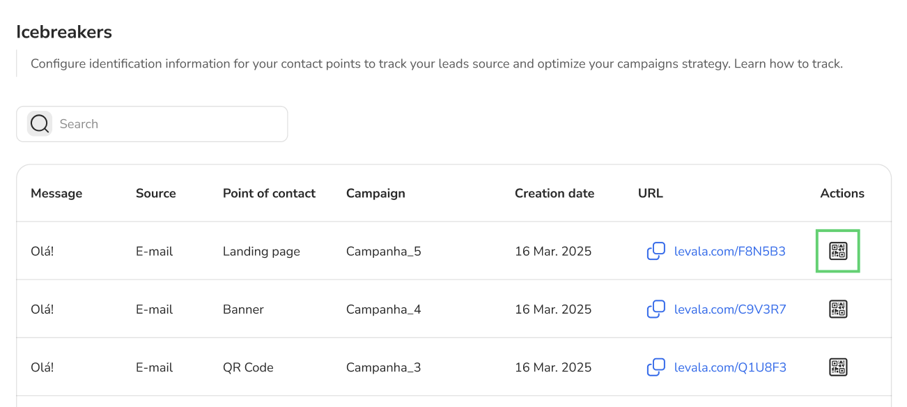 How to track lead entry using Smart Entrypoint / Tracker via Icebreaker: June 30, 2025 15:03 Updated What it is for and how tracking works: Smart entry points are messages enriched with invisible identifiers, making it possible to map the origin, media type, and campaign that generated a conversation. This functionality is only available for use on WhatsApp. It's not yet possible to track on other channels. The use of entry points aims to make it difficult for the lead to delete the tracking information contained within the message. Tracking isn't done using regular expressions, but rather through an invisible ID located at the beginning of the message, between the first and second letter of the ice-breaker message. Example: "H[invisibleID]i, I'd like to know more about this product." Only deleting the ID will cause the source data to be lost. The lead can delete it if they select the entire text + delete, so there is still a possibility of losing information, although the chances are reduced. Creating tracking message and link: Select the bot to which the campaign will be directed. Go to the “Growth” tab and select the “Tracker via Icebreaker” option. Click on “Create Icebreaker” to start configuring your link/message. Fill in the fields with the information you want to associate with the campaign identification. Icebreaker message: this is the message your lead will send to start the conversation with your brand on the chatbot. Origin: the place/social network where your lead will find the campaign. Example: Television Touchpoint: the element/media where the link will be available for the lead to interact and start the conversation. Example: QR Code Identification name: This field is free for adding information that helps identify the campaign. Note the 50-character limit. Example: BBB25 Campaign. Example: with all these fields filled in, when leads start the conversation through the tracked link, it will be possible to know that they entered through a QR Code scanned on television during the BBB25 campaign. Click on “Create.” Use the icebreaker: Copy and paste the link or the message. They will be enriched with an invisible code containing the configured information. And/or download the QR Code, choosing between PNG and JPG formats. Icebreaker Management: The icebreakers created in the chatbot will be listed in a table on the main screen, where it will be possible to: View the information assigned to each link/message,Copy the icebreaker URL, Download the QR Code. Checking the contact origin You can check a lead’s entry through the extras of that contact. Go to the “Contacts” tab, select the user who interacted with the bot, and look in the “Extras” section to see if the assigned information matches the settings made for the marketing campaign. For more information, visit the discussion about this topic in our community or watch the videos on our channel. 😃 Related articles Active Messages - Error Codes Sending WhatsApp Active Messages on Blip Desk TikTok Integration Smartico Extension (iGaming): Message Sending Blip Calls: Making Calls in Desk