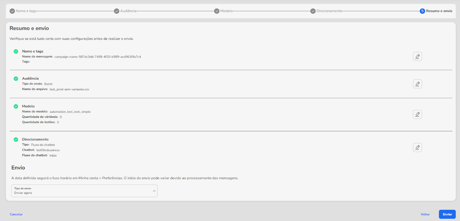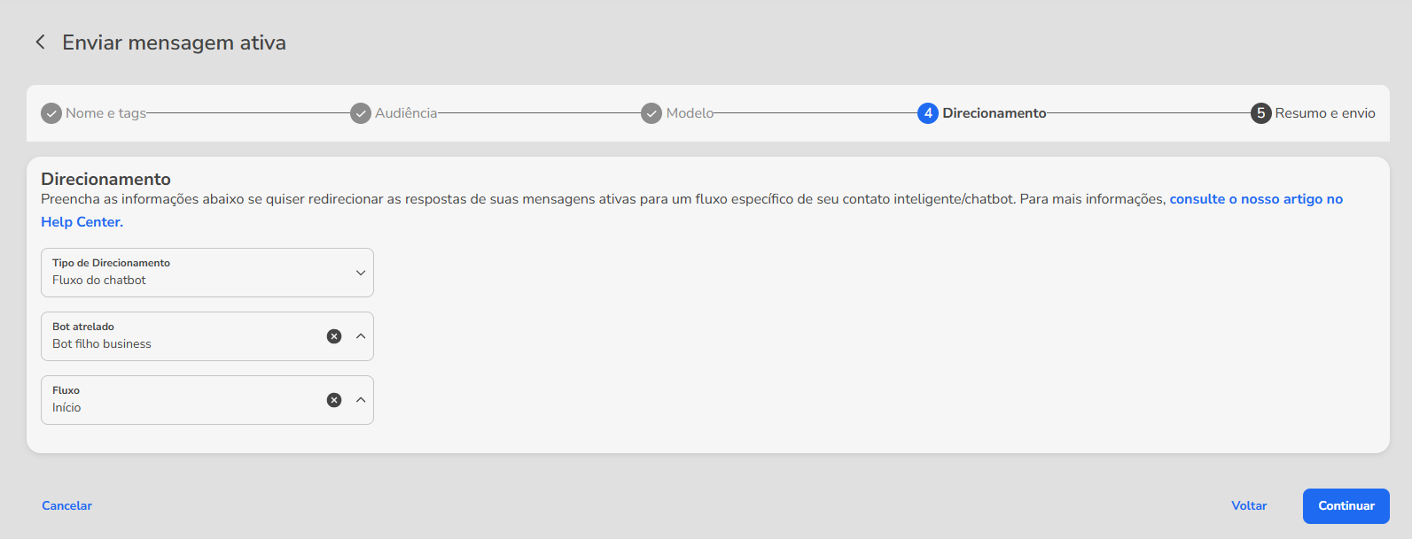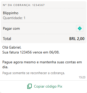 How to Create and Send Active Payment Messages in Blip January 22, 2026 15:17 Updated Important: This product is in Alpha and is not available for general use. Access is granted upon request via KAM, AM, or CSM, subject to validation by the Payments team. Available Channel: WhatsApp Introduction: Outbound Payment Messages Outbound Payment Messages allow your brand to send payment requests directly through WhatsApp, in a secure manner integrated into the customer experience.This type of message can be used to remind customers of a pending payment, send an order summary, or even offer a personalized promotion to complete a purchase—all without depending on the customer to start the conversation. In Blip, this process can be configured intelligently, automatically, and strategically. Creating the Outbound Message Template Access the Blip portal and select a chatbot with an active WhatsApp number. Click on the “...” in the upper corner and select the Contents module. Within the tab, choose Message Templates and click on “Create template”. A sidebar will open to fill in the template information. The “Send for approval” button will only become available after all fields have been completely filled out. Fields to fill out Template name Define the name that identifies the template. Use only lowercase letters, numbers, or the underscore character (_) to separate words. Example: cobranca_pedidoCategory For payment messages, you must select the Utility category.Template language Select the Portuguese (Brazil) language. Currently, the WhatsApp payment model is only available for Brazil and India. Therefore, it is not possible to create variations in English or other languages for this specific purpose.Message content type Blip allows different content formats. In this case, select the Payments type. This specific type enables the necessary fields for sending the order_details object. Template Structure and Interactivity Unlike common templates, payment messages have a fixed structure focused on transactions.The structure allows: Header: Choose the media type (Text, Image, Document, or No header). Message body: Insert the billing text. You can use variables (e.g., {{1}}, {{2}}) to personalize the customer's name, order number, or value in the visible text. Footer: A short, fixed text at the end of the message. Important: The payment method (Pix, Boleto, Credit Card) is not defined during this template creation stage. It will be configured in the audience file (JSON) at the time of sending. Submission for Approval After filling out the fields and defining the message body variables, click on “Send for approval”. A modal will be displayed requesting examples for the variables. Fill them in with fictional data that makes sense (e.g., {{1}} = Maria, {{2}} = 150.00) so that Meta understands the context.Important: Avoid starting or ending the message body with a variable (e.g., {{1}}). WhatsApp requires each variable to be accompanied by fixed text before and/or after, such as “Hello {{1}}, your order has been sent.” This helps the system correctly validate the dynamic content.Upon completing the information, click “Confirm” to finalize the submission of the template for analysis, as shown in the example below: Analyzing the Message Template status After sending your template for evaluation, it will appear in the list with the “Pending” status, indicating that it is under review by Meta. As soon as the review process is concluded, the template will receive one of the following statuses: Approved: the template was accepted and can already be used in your campaigns. Rejected: the template was rejected and cannot be used. Pending: the template is still under review by Meta. Attention: even after approval, the update can take up to 20 minutes to be reflected in the WhatsApp Business API. We recommend that you wait this time before starting the sending of your campaign. How to send an Outbound Payment Message via Growth You can perform the sending of payment messages in two ways: Via API: For systemic integrations. Consult the technical documentation here. Via Portal (Growth): Through bulk sendings, according to the step-by-step below. Configuring the Sending in Growth In the Blip portal, access the Growth → Outbound messages menu. Click on "Send outbound messages".The new sending interface groups the settings on a unified screen to facilitate the process. Fill in the sections as follows: 1. Channel Selection Choose the WhatsApp channel.2. Campaign DefinitionDefine a name for your campaign to facilitate identification in future reports:If the message name is not defined, when clicking the “Continue” button, a message will be presented informing that a name was not defined and presenting the following options: Cancel or, Continue without a name If the option to continue without a name is chosen, then a random name will be defined for the message. 3. Audience (Mandatory: Bulk) For payment messages, it is only possible to perform the "Bulk" type of sending. Options such as "Individual Sending" or "AI Agent" do not support the complex data structure (JSON) required for payments. You will need to upload a .csv file containing the customer data and the payment information. Audience file for Payments To send a payment message, it is necessary to follow some specific standards for the audience file, which are: Use the semicolon (;) delimiter in the file; Have the columns referring to the template (header and message body variables); Finalize with the #payment# column. The #payment# column must contain the specific JSON object of the WhatsApp “order_details” message type. Learn more about payment messages on WhatsApp. Order Details (WhatsApp Order Component) The Order Details template is a new and powerful functionality from Meta that allows companies to send interactive and rich-in-order-details messages (products, values, status) directly on WhatsApp. This solution opens new rev