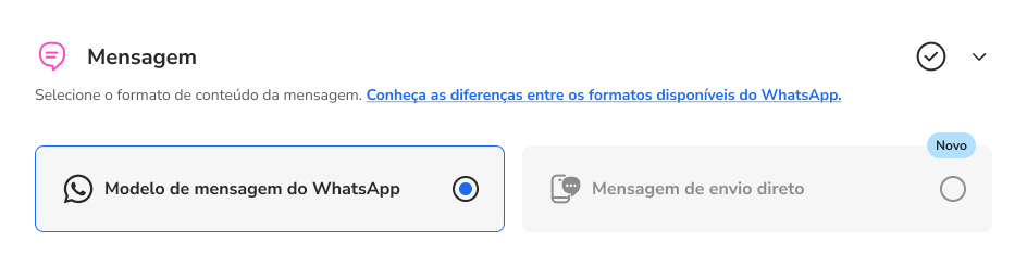 [Beta] Direct Sending for Utility Messages March 13, 2026 13:34 Updated Index Introduction Supported content Eligibility Verification Sending direct messages Compliance Policy and Strikes Frequently Asked Questions (FAQ) Introduction This year, Meta is testing the Direct Send solution, which simplifies the sending of Utility messages by eliminating the model creation stage. The goal is to bring the WhatsApp experience closer to the agility of SMS/RCS, automating template management in the background. Among the benefits we highlight: Agility: Acceleration of time-to-market for utility campaigns. Flow Simplification: Integration in a single step, similar to SMS/RCS. Cost Consistency: Ensures that messages remain in the "Utility" category, avoiding higher charges due to re-categorization to "Marketing". Content Reuse: Ease of reusing ready-made texts from other channels, such as SMS notifications. Behind the sending process, Meta will use its own models, ensuring that companies maintain access to detailed insights and troubleshooting, in addition to ensuring message compliance with Utility category guidelines. Supported content Direct Send is intended for simple text messages. Check the specifications: Element Specification Text Body Up to 1024 characters. Header (Optional) Up to 60 characters. Footer (Optional) Up to 60 characters. Quick Reply Buttons Maximum of 3 buttons. Call-to-Action (CTA) Button Maximum of 1 button (URL or Phone). TTL (Time to Live) Customizable. What is not supported: Messages with media (images, videos, PDFs), carousels, location, contacts, stickers, or reactions. This type of content can still be sent through Growth using approved templates. Eligibility Verification In addition to the company being verified, it is necessary to submit samples of the utility message use cases that will be sent to ensure alignment with the Utility category guidelines. The Meta team will review these content samples and return with two possible feedbacks: If the content is aligned with Meta's utility guidelines, the company will become eligible for the solution. If the template is not aligned with the policies, the company must review the content and make a new submission for review. Upon passing the approval of the template samples, the functionality will be enabled for users eligible for Beta testing. In the platform, we have created an experience to facilitate the submission of utility message samples. Simply access the Growth tab and, in the Active Messages menu, go to Direct Send (Beta).When clicking to submit the samples, a modal will appear for completion. We require at least 4 samples of Utility messages, and we recommend providing examples of each use case that will be used (Text messages, Call-To-Action URL, and Reply Buttons). If one of these resources (Call-To-Action URL or Reply Buttons) is not used, simply send another example that fits into a simple text message (Text messages). Sending direct messages After approval from Meta, to start sending messages, simply follow the same process as template-based sending. Access the Growth menu, click on Create broadcast in the menu, and after selecting the WhatsApp channel, the sending screen should be filled in following each of the steps. After selecting the broadcast mode and filling in the audience, the Message box will open with two cards: WhatsApp Message Template or Direct Send Message. Select the second option and the screen for filling in the message content will open. Note that the field is free. The message can be written however you wish, respecting the Utility message policies.In addition to customizing the message body, you can include a footer and a header. In the Suggested Actions tab, you are allowed to configure buttons that direct to links or phone numbers, while the Quick Replies tab accepts up to three interaction options. Compliance Policy and Strikes Direct Send offers an enhanced enforcement experience, ensuring that all messages remain classified as Utility, avoiding re-categorization to Marketing. If messages violate guidelines and are considered "Marketing", the WABA may face sanctions through a "strikes" system. Check the penalty levels below: Notification (Full Access): When inappropriate content is detected, Meta issues a notification at the template level. You will have the opportunity to correct the content or open an appeal if you disagree with the classification. Warning (Normal Access): If violations persist, a formal warning is issued at the account level (WABA). Access to the functionality remains normal, but it serves as a critical alert that the account is at risk. Suspension (Limited Access): At this stage, you may incur up to 2 strikes; the first results in a temporary 7-day suspension, while the second extends the suspension to 30 days. During this period, sending new messages via Direct Send is blocked until the suspension period ends or the contestation is accepted. Ban (No Access): In cases of serious recidivism or lack of adjustment after previous warnings, permanent removal of access to the Direct Send API occurs. If the content is not corrected and no review is opened during the suspension, Meta reserves the right to remove the account from the functionality permanently. In this scenario, the direct message sending button will be disabled. Frequently Asked Questions (FAQ)1. Where do I see the created templates? It is possible to view the templates generated by Meta through the Message Models option, in the Content tab of the Blip Portal, or through the WhatsApp Manager. It is important to reinforce that the templates created by Meta, in Direct Send, will be created with the prefix “auto_generated”.2. Will my number quality be affected? Yes, the health of the number continues to be monitored and you will receive notifications via Business Manager if there are problems.3. Using Direct Send will I still have cases of template re-categorization? No, this new functionality aims to sim