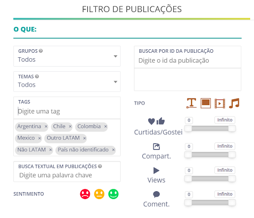 Con esta funcionalidad, es posible extraer informes, comprender tendencias y obtener percepciones de cada país de América Latina (LATAM) individualmente al segmentar las publicaciones de Listening. A partir de esta acción, se puede comprender mejor la opinión y el comportamiento de los consumidores LATAM.