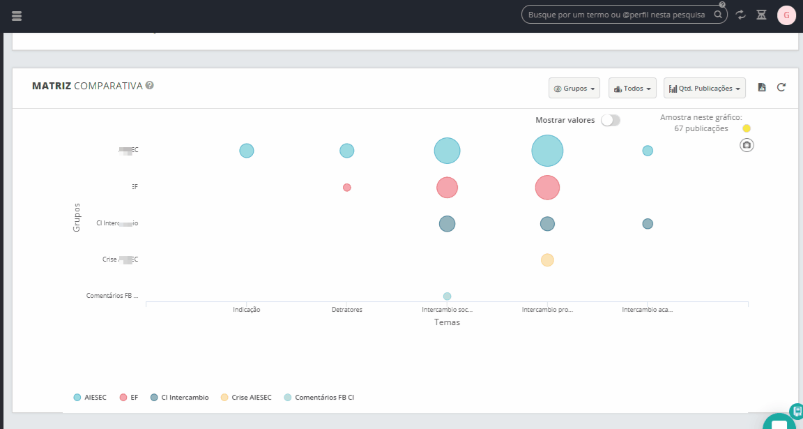 Dentro de esta área, también puedes exportar la tabla como un archivo CSV, mostrar más de 10 resultados a la vez en la página y buscar un Grupo o Tema específico en la pestaña "Buscar".