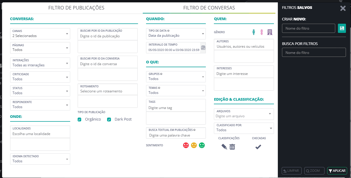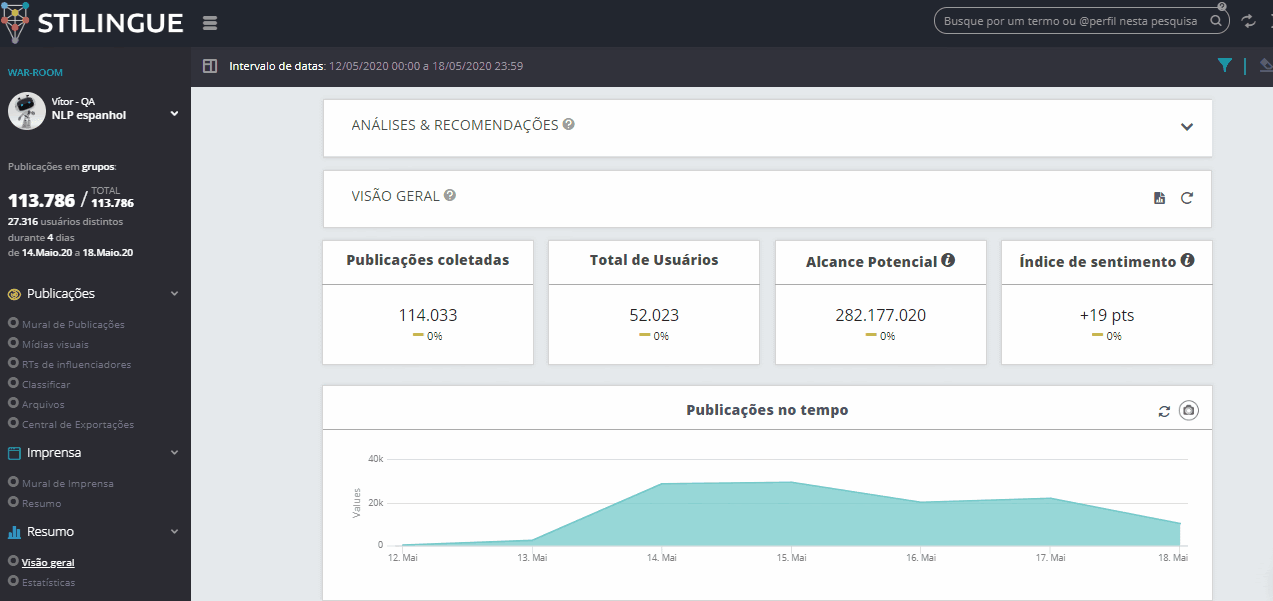 Comprenda las métricas de las publicaciones en lengua española recopiladas en su investigación. STILINGUE Español permite la recopilación de publicaciones en español, de la misma manera que ya ocurre con la monitorización en portugués. De esta manera, puede tener una visión unificada de lo que los clientes dicen sobre su marca, ya sea en Brasil o en otro país de lengua española. Obtenga más información sobre este producto haciendo clic aquí.