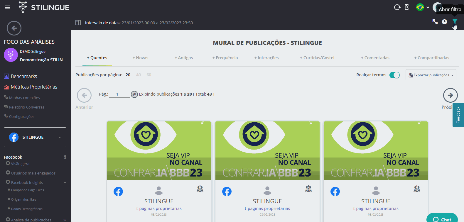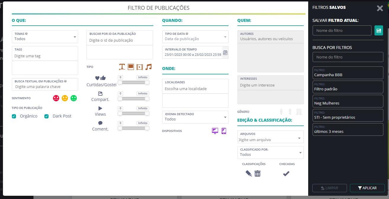 Para obtener más información sobre este filtro, consulte la guía Filtro de Publicaciones y comprenda más detalles sobre todos los campos disponibles.