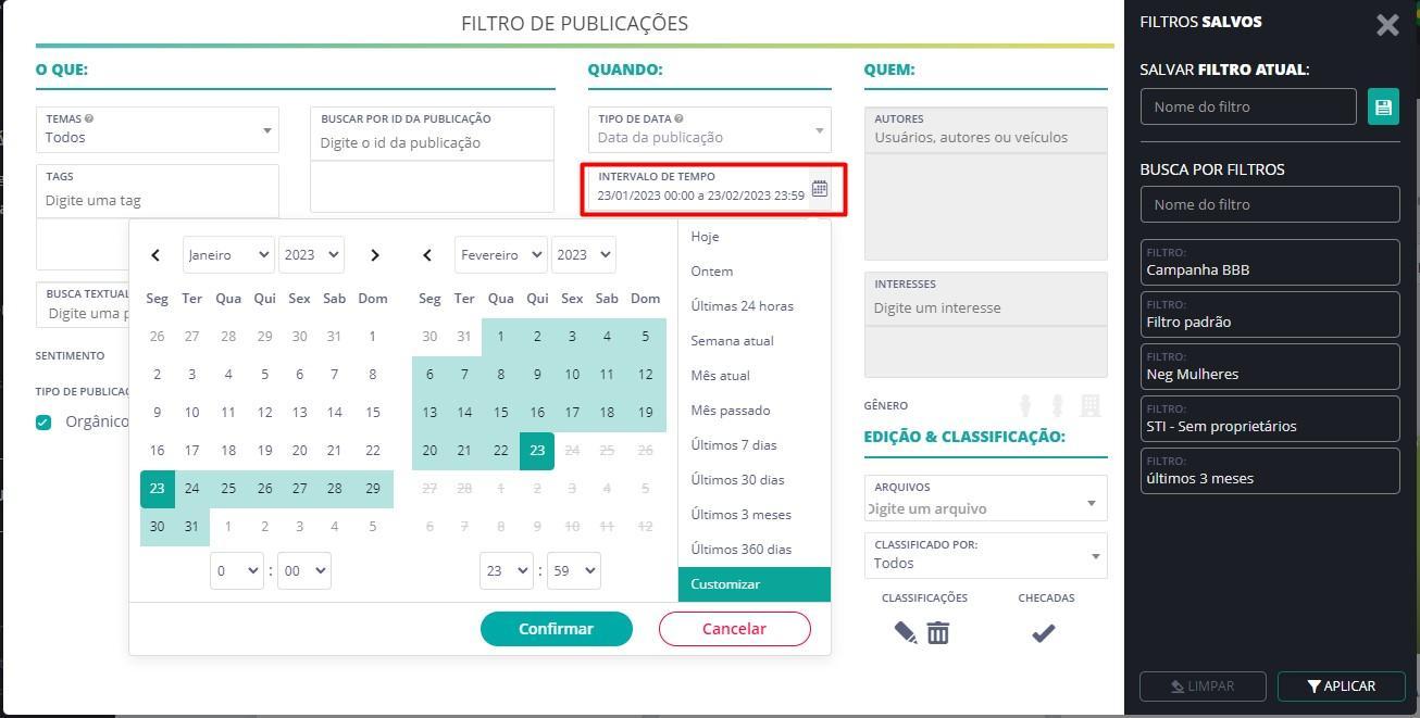 Para obtener más información sobre este filtro, consulte la guía Filtro de Intervalo de Fechas y comprenda más detalles sobre todos los campos disponibles.