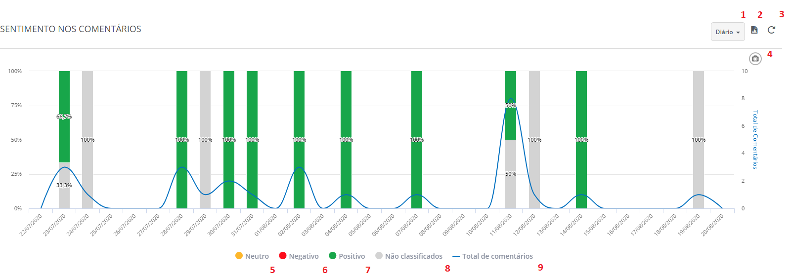 Suma de comentarios hechos en las publicaciones dentro del período seleccionado en el filtro.