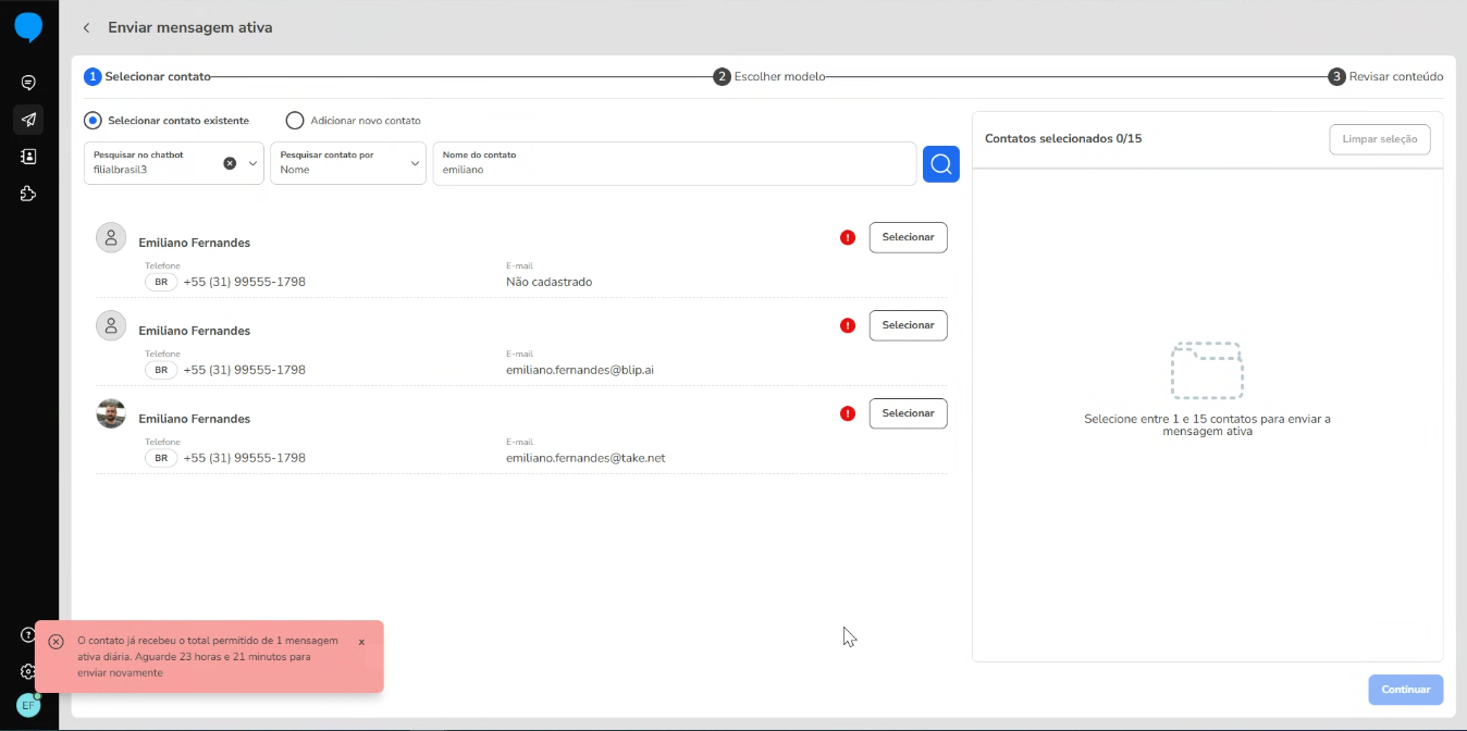 Cuando intente enviar un nuevo mensaje activo a un cliente que ya ha alcanzado el límite, el agente verá: