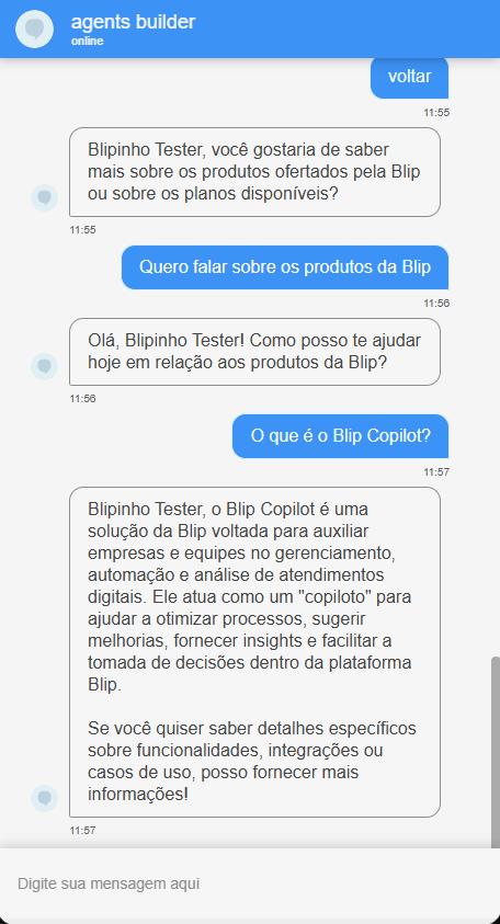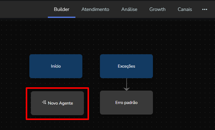 El Agent Builder fue diseñado para permitir la creación y personalización de agentes de Inteligencia Artificial de forma visual e intuitiva. Con él, puedes personalizar el comportamiento de tu agente, definir su base de conocimiento, establecer condiciones de salida para el flujo e integrar herramientas externas.