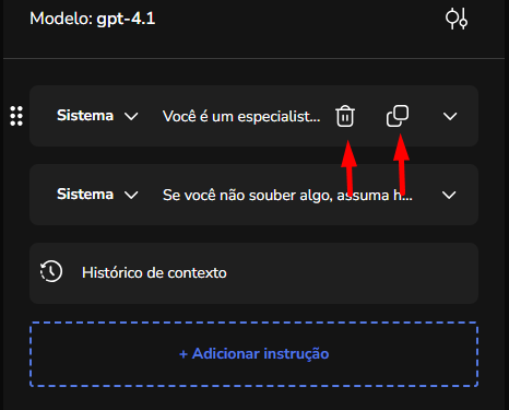 Si la opción de historial de contexto está activada en la configuración del modelo, también aparecerá en la pantalla de instrucciones y podrá ser ordenada junto con las demás.