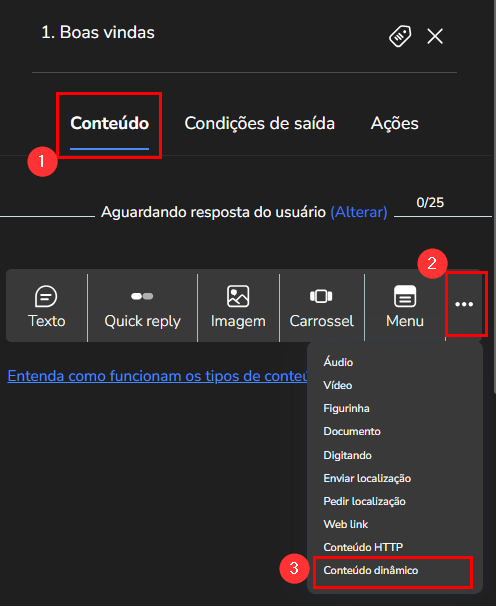 Seleccione la opción Contenido Dinámico (icono de engranaje/lista):