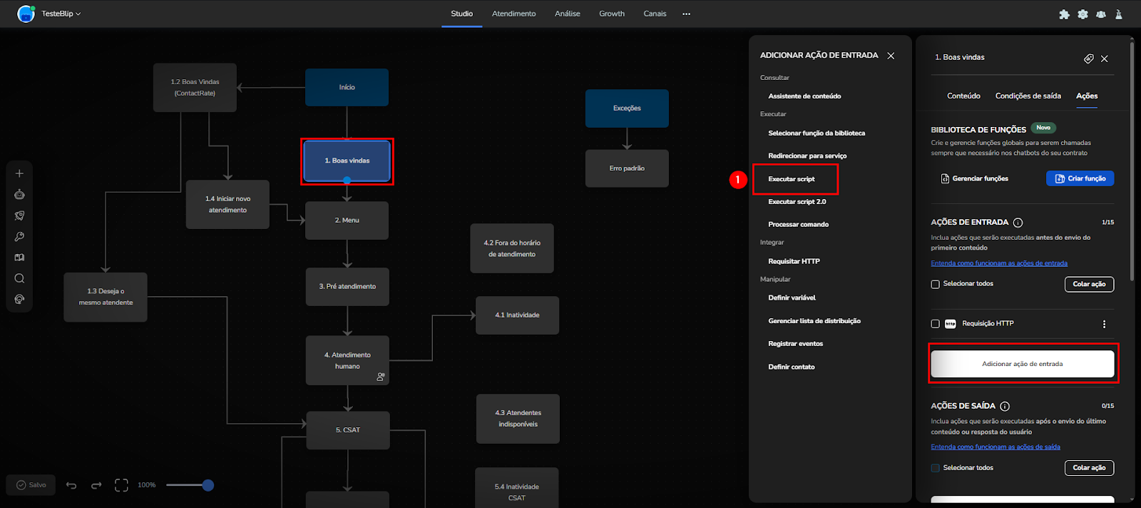 Añada una Acción de Entrada (o Salida, dependiendo del flujo).