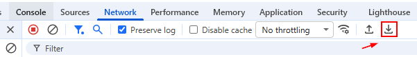 O haga clic con el botón derecho en cualquier petición y seleccione: "Save all as HAR with content"