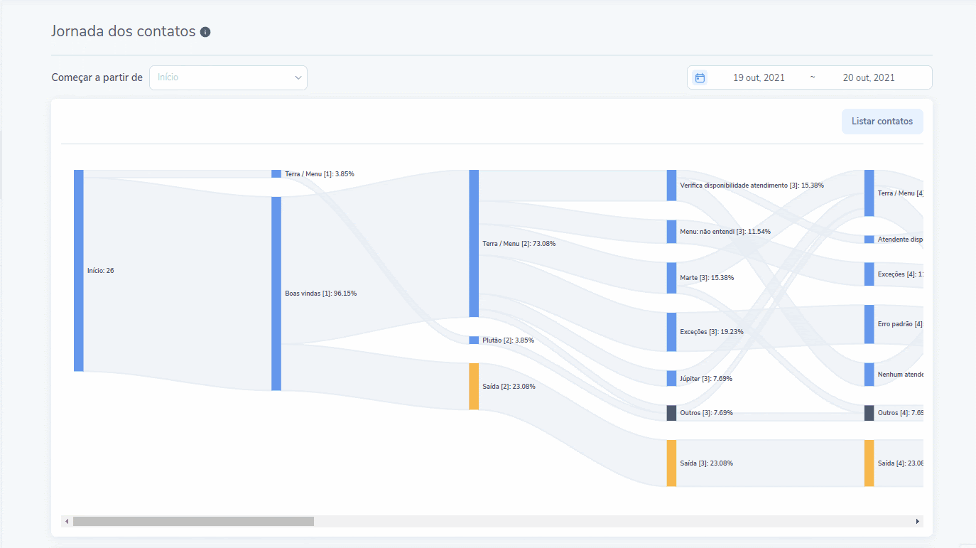 Preste atención a las salidas en momentos no deseados, loops en el flujo, las funcionalidades más usadas y aprenda con más detalles cómo sus clientes interactúan con su contacto inteligente.