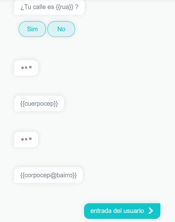 9) Las variables creadas se usan entre llaves en el bloque bot y se reemplazan por los valores encontrados después de la solicitud.
