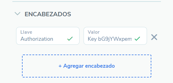- Regrese al bloque donde creó la Acción de solicitud HTTP, en la pestaña ACCIONES → “SOLICITUD HTTP”, acceda a “ENCABEZADOS” y escriba “AUTORIZACIÓN” en el campo “CLAVE” y pegue el texto copiado anteriormente en el “VALOR” campo.