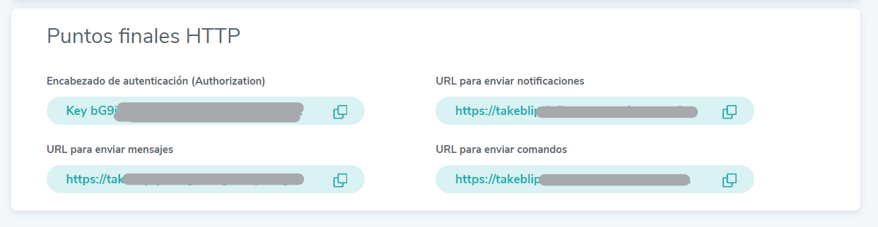 - Desplácese hacia abajo en la página y busque "PUNTOS FINALES HTTP", copie el primer campo "ENCABEZADO DE AUTENTICACIÓN (AUTORIZACIÓN)".