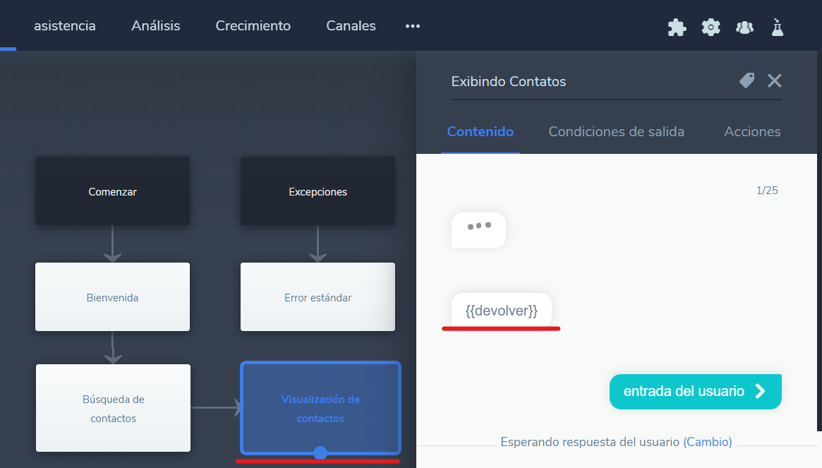 15) Al probar el bot, tan pronto como el usuario ingresa el correo electrónico, la variable {{return}} devolverá todos los correos electrónicos de los contactos, es decir, de esta manera es posible obtener los correos electrónicos ingresados por los usuarios en el chatbot. a través de una solicitud HTTP!