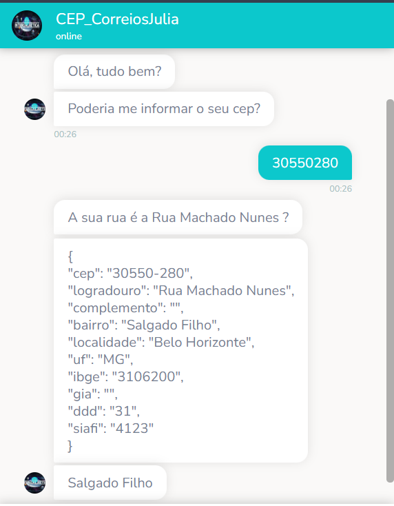 10) ¡Listo! Ahora, en la vista del usuario, al usar el chatbot, los mensajes se muestran como se muestra a continuación: