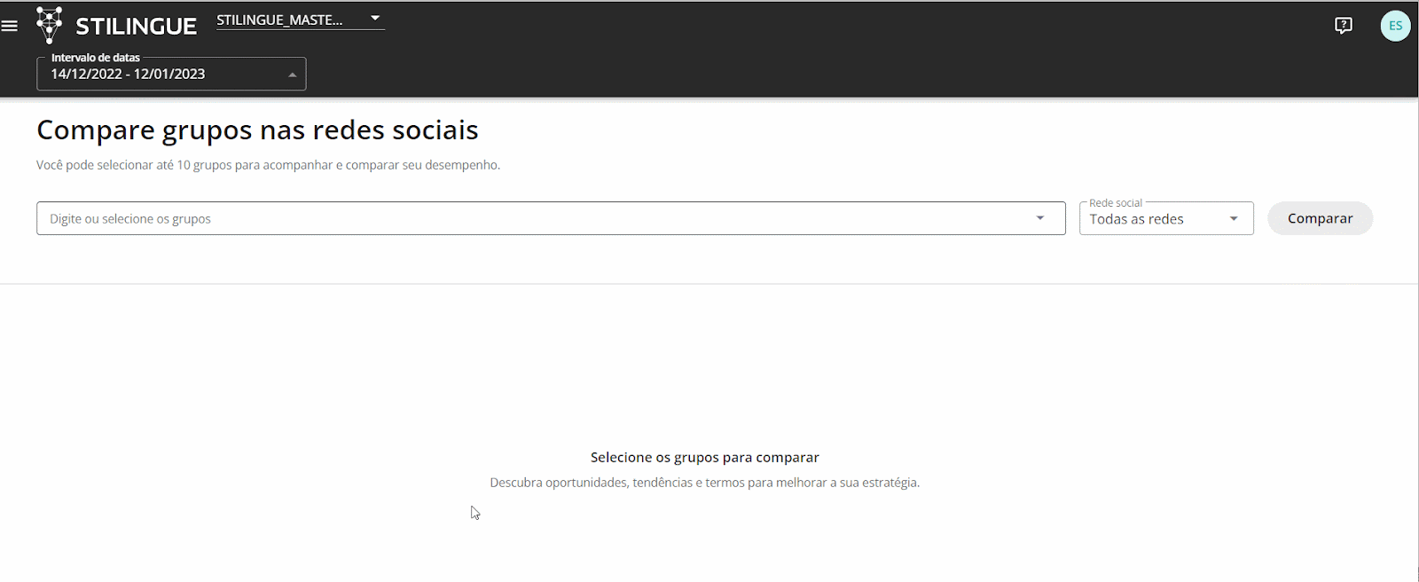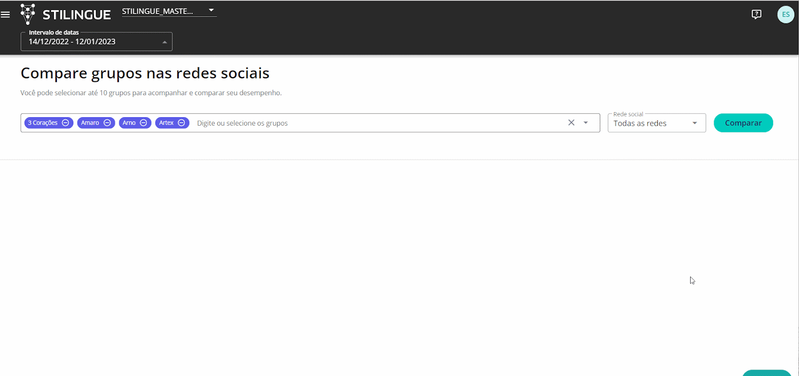 Comparação de grupos - Benchmarks STILINGUE 21 de janeiro de 2026 12:56 Atualizado Índice:O que compara? Selecione as principais marcas para analisar a concorrências nas redes sociais O Benchmarks é uma solução criada pela STILINGUE para visualizar e comparar em um só lugar diferentes páginas de marcas concorrentes existentes nas redes: Facebook, Instagram,Twitter, e Youtube. O que compara?Os dados públicos das marcas concorrentes são trazidos pela API das redes sociais e reunidos em agrupamentos de páginas. Após confirmar as marcas que gostaria de comparar, você pode visualizar os resultados na Visão Geral, com os dados de diferentes redes sociais de todas as marcas em um único gráfico; ou fazer análises paralelas referentes a cada rede disponível (Facebook, Instagram, Twitter, e Youtube). Acompanhe os passos para definir os grupos: 1. Intervalo de datasEscolha o período de análise. Você consegue selecionar até 1 ano pelo filtro, mas o retorno dos dados vai depender do início da coleta. Não há dados retroativos anteriores a esse período. 2. Seleção dos grupos Clique na lista para que as marcas sejam apresentadas. É necessário escolher pelo menos dois grupos para a análise. Atenção! As marcas que aparecem nessa área são definidas a partir do Setup criado pelo time da STILINGUE. Atualmente, não é possível editar ou alterar os grupos. A coleta de dados se inicia a partir da data de configuração do Setup, não sendo possível obter dados retroativos. 3. Rede social Selecione “Todas” para analisar a visão de grupo de redes sociais por marca. 4. Comparar Agora é só clicar em “Comparar” e observar os resultados: Para mais informações, acesse a discussão sobre o assunto em nossa comunidade ou os vídeos no nosso canal. 😃 Artigos relacionados Visão geral do Blip Desk Base de fãs - Benchmarks STILINGUE Gráficos - Benchmarks STILINGUE Dados Coletados do Youtube - Métricas Proprietárias Contexto e Grupos