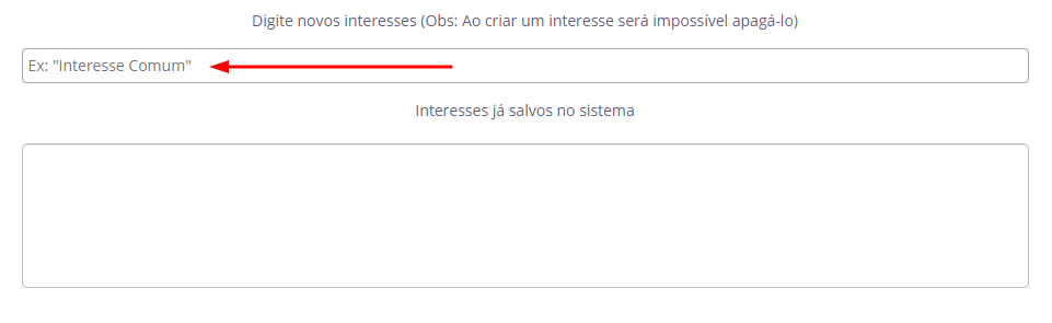 Novos interesses 21 de janeiro de 2026 12:01 Atualizado Índice: Introdução O que são os interesses? Como acessar IntroduçãoSaiba como identificar e trabalhar com tribos de usuários presentes nas publicações coletadasA STILINGUE desenvolveu critérios importantes de análise para auxiliar na coleta e classificação da sua pesquisa. Ao segmentar usuários por interesses, é possível desenvolver campanhas direcionadas, além de entender a atuação deles nas redes. O que são os interesses?Os interesses funcionam como “tribos” de usuários. A classificação automática do sistema atua em cima do conteúdo publicado nas redes sociais. A partir da publicação coletada na ferramenta, o usuário - autor - é identificado e o teor dessas publicações é levado em consideração para atribuir um interesse específico. Exemplo: O usuário escreve termos como “som” e “canções” em determinada rede social. Assim que uma publicação dele é coletada no sistema, o interesse “Música” será atribuído. É possível também criar classificações próprias de interesse dentro da configuração de pesquisa e aplicá-las aos usuários, como demonstraremos a seguir. Conheça os interesses da base STILINGUE clicando aqui. Como acessarAcesse a área de Configuração pelo menu lateral ou pelo card - para mais detalhes, consulte o guia Criar/Editar Pesquisa que faz parte da Central de Ajuda. Para facilitar o processo, você pode expandir ou ocultar as seções que correspondem a cada etapa da Configuração de Pesquisa:Todas as pesquisas contam com a classificação automática de interesses de acordo com assuntos predeterminados na base da STILINGUE. Quando um usuário é classificado sob um determinado interesse, suas publicações coletadas na pesquisa também virão classificadas dessa forma. Tópicos como: “Notícia”, “Moda,“Mídia” e vários outros são exemplos do que o usuário pode demonstrar como interesse por meio do conteúdo que publica nas redes.Para incluir novos interesses na pesquisa, digite no campo indicado na imagem abaixo o que gostaria de segmentar entre seus usuários:A partir do momento em que um interesse é criado por você na pesquisa, ele passa a fazer parte do seu painel, apenas, sem interferir em outras pesquisas inseridas na ferramenta. Essa funcionalidade serve para que você também possa criar suas próprias classificações de interesse e aplicá-las nos usuários de sua busca.Observação: depois que os Novos Interesses são criados e salvos no sistema, não é possível apagá-los. Para visualizar os dados da pesquisa com base na classificação de interesses, aplique o filtro de publicações no Listening e escreva o interesse que deseja buscar. Somente as pesquisas classificadas serão visualizadas.Continue aprendendo como fazer a Configuração de Pesquisa, leia a seguir nosso guia sobre cadastro de Blogs.Para mais informações, acesse a discussão sobre o assunto em nossa comunidade ou os vídeos no nosso canal. 😃 Artigos relacionados Coleta Bluesky - Listening STILINGUE Espanhol Interesses de usuários Como configurar um bot para transferência por atendente Exibição de número de clientes em espera