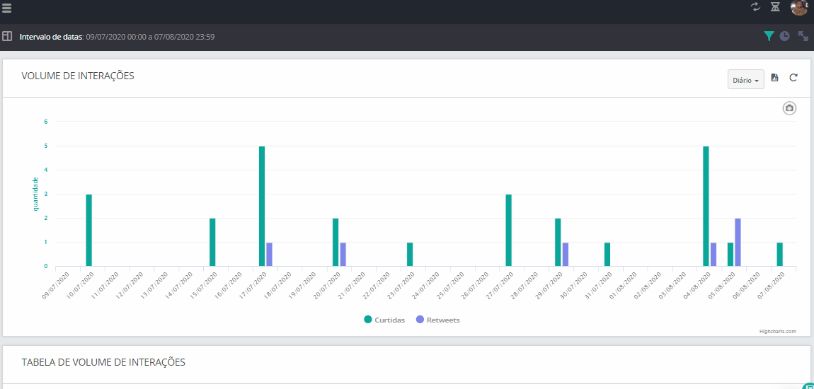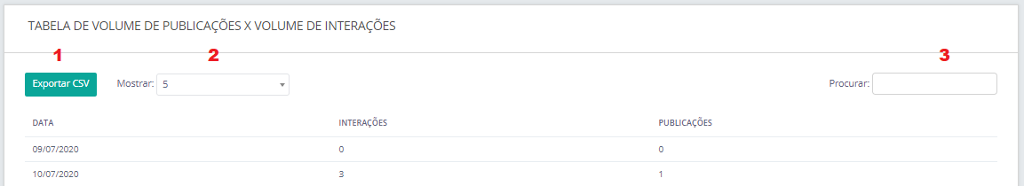Volume de Interações - Youtube 22 de maio de 2024 15:58 Atualizado Compare o número de curtidas com o de comentários e visualizações das publicações do seu canal proprietário do YouTube. Ao acessar o Métricas Proprietárias você encontra gráficos capazes de te ajudar com a análise do conteúdo publicado nas redes sociais. Localize esses dados pelo menu lateral, em “Volume de Interações”: O gráfico apresentado irá detalhar o volume de curtidas, de comentários e visualizações dentro do período selecionado. Gráfico Volume de Interações 1. Período de visualização do gráfico Visualize os dados do gráfico selecionando para que as informações apareçam por dia, semana ou mês. 2. Exportar relatório Exporte os gráficos e a tabela com os resultados. Aqui, é possível exportar também a tabela de forma separada. 3. Recarregar card Atualize as informações do gráfico, para que os dados mais recentes sejam apresentados. 4. Botão de Exportação Faça a exportação do gráfico escolhendo entre imagem e outros formatos. 5. Gostei Quantidade de curtidas nas publicações proprietárias. 6. Comentários Quantidade de comentários de publicações proprietárias dentro do intervalo de tempo, conforme a data de publicação do vídeo. 7. Visualizações de vídeos Número de visualizações de vídeos proprietários dentro do intervalo de tempo. Observação: a legenda pode ser desativada, apresentando apenas os dados que você considera relevante no momento. Ao clicar nos critérios da legenda, ela fica cinza e os outros pontos ficam em destaque. Zoom Você pode clicar em qualquer ponto do gráfico e ser redirecionado para o Zoom. Essa área irá ampliar os dados do gráfico, mostrando no detalhe. Tabela 1. Exportar Exporte pela tabela o conteúdo em formato CSV. 2. Mostrar É possível escolher entre 5 a 100 dados para visualizar de uma vez. 3. Procurar Busque pelos números apresentados no gráfico, utilizando o campo. Para mais informações, acesse a discussão sobre o assunto em nossa comunidade ou os vídeos no nosso canal. 😃 Artigos relacionados FAQ Blip Store Termos de uso e privacidade do Blip Como funciona a distribuição de tickets Histórico Permanente - Standard Volume de Atendimentos por Tags - Relatório de atendimento & anotações