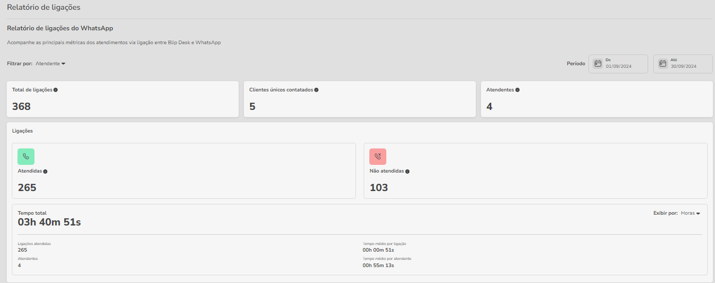 Blip Calls: Realizando ligações no Desk 31 de outubro de 2025 17:20 Atualizado Índice Para que serve o Blip Calls? Configurando o primeiro uso Atendentes: utilizando ligações no Desk Para que serve o Blip Calls? Blip Calls é mais uma funcionalidade para clientes Blip, que permite às empresas gerenciarem e realizarem ligações de voz diretamente através da plataforma. Integrando-se diretamente ao WhatsApp, Blip Calls oferece uma solução eficiente para comunicação direta, complementando as interações via mensagens e proporcionando uma experiência de atendimento ao cliente mais completa e versátil. Configurando o primeiro uso Após realizar a contratação do produto, para iniciar o uso é necessário primeiramente habilitar a funcionalidade no Painel de Contrato e posteriormente, ativar a funcionalidade na operação. a) Habilitando a funcionalidade no Painel de Contrato: 1. Acesse o Painel do Contrato: - Faça login na plataforma. - Navegue até o "Painel do Contrato". 2. Acesse Blip Calls: - Na seção 'Funcionalidades', clique na opção 'Blip Calls'. 3. Habilite Blip Calls nos bots desejados: - Na tela que irá abrir, você verá uma listagem de todos os bots associados ao contrato. - Habilite o Blip Calls nos bots desejados. Nessa listagem, aparecerão colunas com as seguintes informações: Nome do bot: Exibe o nome e a imagem do bot Telefone: Número de telefone único associado ao bot. Solicitar permissão de chamada: Permitirá que o WhatsApp solicite aos usuários uma permissão para ligação ativa após uma chamada iniciada pelo usuário Observação: Recomendamos que essa opção seja desativada, pois o ícone de ligação permite o usuário a ligar mesmo sem interagir com o bot ou atendente, gerando um volume alto de ligações não qualificadas. Se desativado, o cliente só poderá ligar para a empresa quando o atendente solicitar a ligação através de uma mensagem. Ação: Possibilidade de habilitar ou desabilitar o Blip Calls no bot em questão b) Ativando a funcionalidade na operação: 1. Ative a configuração geral no bot: - Selecione um bot que foi habilitado o Blip Calls. - Entre no menu "Atendimento" - Navegue até 'Configurações gerais'. - Habilite as opções 'Receber ligações' e 'Realizar ligações', que ativam essas funcionalidades no bot escolhido. 2. Permissione quais atendentes poderão realizar ligações: - Ainda no menu "Atendimento", navegue até a opção 'Atendentes'. - Selecione os atendentes e clique no ícone para editar as permissões. - Ao abrir a listagem das permissões disponíveis, ative as opções "Receber ligações" e “Realizar ligações”. Pronto, após essas configurações, o atendente já terá acesso às funcionalidades do Blip Calls. Atendentes: utilizando ligações no Desk Após as etapas de configuração mencionadas no item anterior, os atendentes permissionados poderão realizar ligações no Blip Desk. Existem duas formas de estabelecer uma ligação no Desk: Ligações ativas (ou ligações realizadas): São ligações onde o atendente liga para o cliente. Ligações receptivas (ou ligações recebidas): São ligações onde o cliente liga para o atendente. Para garantir uma experiência eficiente e conforme as diretrizes estabelecidas pela Meta, as seguintes regras devem ser seguidas ao realizar uma ligação ativa diretamente para o WhatsApp do cliente no Desk: a) Regras das ligações ativas 1. Pré-requisitos: - O ticket deve estar aberto e o contato do cliente deve estar salvo com o número de telefone. 2. Fluxo geral de solicitação de ligação ativa: O atendente deve enviar um pedido de autorização para o cliente.- O cliente decide se autoriza a ligação ou não.- Caso autorizado, o atendente poderá iniciar a ligação.- O atendente terá 7 dias para iniciar a ligação. Caso o usuário não atenda por 4 vezes seguidas, a permissão será revogada pelo Whatsapp.- A autorização do cliente é válida para 5 chamadas por dia para aquele cliente. Seguindo a regra anterior. 3. Pedidos de permissão: - Primeiro pedido: Pode ser realizado a qualquer momento. - Segundo pedido: Liberado 24 horas após o primeiro pedido. - Limite semanal: Máximo de 2 pedidos em um período de 7 dias. - Reset do contador de pedidos: O contador é zerado quando ocorre uma ligação bem-sucedida. 4. Respostas do cliente: - O cliente pode responder aceitando, não aceitando ou ignorando o pedido de ligação. - O cliente pode alterar sua resposta antes da expiração do componente de pedido de autorização de ligação, enviado pelo atendente. - O cliente pode revogar a autorização a qualquer momento, no aplicativo do whatsapp. 5. Tempo de expiração: - O componente de solicitação expira em 72 horas. b) Regras das ligações receptivas 1. Pré-requisitos: - O ticket deve estar aberto e o contato do cliente deve estar salvo com o número de telefone. 2. Fluxo geral de solicitação de ligação receptiva: - O atendente envia uma solicitação, que possibilita a ligação do cliente para o atendente. - A solicitação pode ser enviada através do recurso específico disponível no Desk, ou através da funcionalidade de respostas prontas. - O cliente decide se irá ligar ou não. - Caso o cliente ligue, o atendente poderá aceitar a ligação. 3. Pedidos de permissão: - Diferente das ligações ativas, que possuem regras para a quantidade de pedidos, as ligações receptivas podem ser solicitadas a qualquer momento. 4. Respostas do cliente: - O cliente pode ligar através do componente enviado pelo atendente, não ligar ou ignorar. c) Gravação e Transcrição de Ligações No final de cada ligação realizada (ativa ou receptiva) será gerada a gravação do áudio da conversa (exceto no Blip Desk app), que poderá ser acessada a qualquer momento no histórico da conversa ou no relatório de ligações. Esse áudio também poderá ser baixado como arquivo de áudio na extensão webm. d) Relatório de Ligaçõ