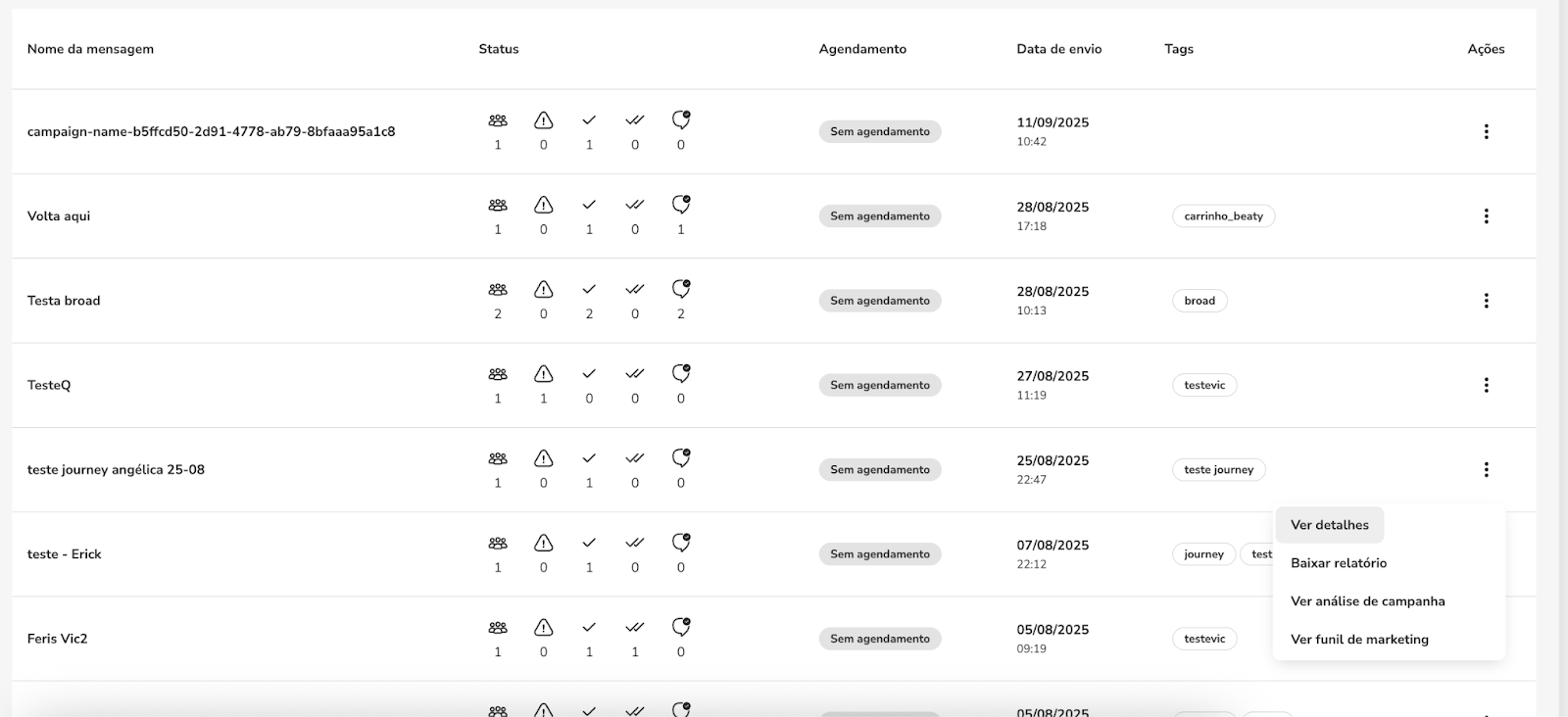 Marketing Messages Lite API 19 de setembro de 2025 13:27 Atualizado Índice Criar campanhas de mensagem de marketing Como ativar o MM Lite Enviar mensagens ativas no Portal usando MM Lite API MM Lite via Active Campaign API O que é o Marketing Messages Lite API? O Marketing Messages Lite API (MM Lite API) é uma solução da Meta que utiliza da forma padrão de envio de mensagens que as marcas estão acostumadas via Cloud Api, porém, trazendo um algoritmo e inteligencia de otimização da própria Meta. Esse algoritmo utiliza os sinais disponíveis como informações que a marca já possa compartilhar com a Meta ou ações dos contatos como, por exemplo, terem visitado a página do Instagram ou Facebook da marca. Seu objetivo é aumentar o ROI das campanhas e melhorar o alcance das mensagens de marketing da marca para números com alta propensão de engajamento. A precificação segue os mesmos valores praticados para as mensagens enviadas para Cloud API, porém, com os benefícios de possibilitar um aumento de ROI e de taxa de entrega. Além disso, o processo de disparo na plataforma da Blip é similar ao realizado para Cloud API. Como ativar o MM Lite A integração precisa ser feita por um usuário do Blip com acesso ao Business Manager que deverá realizar os passos abaixo. Caso os colaboradores da empresa não tenham acesso a Blip, basta conceder acesso para realizar a integração, podendo serem removidos depois. Acesse a área de Growth do portal e na sequência a opção “Mensagens ativas” no menu lateral. O primeiro passo é conectar a MM Lite API selecionando o botão “Conectar MM Lite API” destacado na imagem abaixo. Com isso, o pop-up do fluxo de ativação para MM Lite API será aberto e basta seguir os passos. Verifique se a primeira tela do pop-up diz respeito a Marketing Messages Lite API e conceda permissão para o compartilhamento das informações entre Blip e Meta. Na sequência será preciso selecionar o negócio a ser conectado e depois os números de WhatsApp, iniciando pela etapa abaixo do pop-up. Na próxima tela, selecione uma ou mais contas de anúncio. Por último, revise as informações antes de clicar em continuar. Importante: O próximo passo depende do tipo de WABA que o negócio tiver. Para integrar com a MM Lite API é obrigatório que as WABAs sejam do tipo compartilhada. Caso a WABA do seu negócio já seja desse novo modelo, a próxima etapa não será exibida durante o processo de integração. Porém, no caso de WABAs do tipo On-Behalf-Of (OBO) será necessário realizar a migração e para isso basta seguir os passos de aceite que serão apresentados conforme imagem abaixo: Quando uma migração de WABA é realizada para o modelo compartilhado, o negócio passa a ter acesso à WABA e não somente à Blip, dando diversas vantagens de gestão: acompanhar a qualidade dos números, solicitar selo de conta oficial, configurar catálogo e flows sem precisar abrir ticket para o suporte da Blip, criar templates de mensagens e editar informações de perfil.No entanto, o negócio passa também a conseguir excluir WABAs e/ou números, o que é um processo irreversível; por isso, é de suma importância ter atenção ao realizar operações dentro da WABA. A última etapa de integração com a API consiste em revisar as informações e dar o aceite final como mostrado na imagem abaixo. Uma vez realizado o procedimento de integração, a Meta considera um prazo em torno de 24 horas para sincronização do processo e efetivação da integração com o MM Lite. Durante esse período de latência, os disparos de marketing messages serão automaticamente enviados via Cloud API, garantindo a continuidade das campanhas. Após esse período, os usuários que já estiverem autenticados na MM Lite API não terão mais a opção de envio por meio da Cloud API. Enviar mensagens ativas no Portal usando MM Lite API Para enviar mensagens utilizando a MM Lite API acesse a área de Marketing do seu chatbot, acesse a opção Mensagens ativas no menu e na sequência clique em "Enviar mensagem ativa”. Uma vez conectada a MM Lite API, o processo de configuração da campanha segue o mesmo processo e etapas do Cloud API. Definição de audiência É possível selecionar um disparo individual onde se insere um único número ou um disparo em massa fazendo upload de um arquivo CSV com todos os números Conteúdo Na utilização de MM Lite API é contemplada a possibilidade de se utilizar todos os templates e modelos já aprovados para Cloud API. Para informações mais detalhadas sobre as etapas em comum das APIs clique aqui. Relatórios e dados Assim como no disparo de Cloud API, é possível acompanhar o status de entrega das mensagens na listagem das campanhas de Growth. Para isso selecione o menu “ações” para a campanha que deseja acompanhar os resultados. Feito isso será possível tomar duas ações: fazer download do relatório ou ver detalhes da performace. A primeira opção segue o mesmo tipo de dados e formato de relatório utilizado para Cloud API. No caso de analisar performance algumas informações já serão exibidas em tela conforme imagem abaixo. MM Lite via Active Campaign API Para os clientes que realizam disparos de mensagens ativas diretamente por integração via API, basta seguir os passos de integração com a MM Lite API, conforme demonstrado neste artigo. Após a conclusão do processo, a plataforma da Blip identificará automaticamente a categoria do template utilizado e redirecionará os envios de mensagens ativas de marketing para a nova API nas campanhas subsequentes, sem necessidade de ajustes manuais. Artigos relacionados Como enviar SMS via API Mensagens Ativas - Códigos de erro Envio de Mensagens Ativas do WhatsApp no Blip Desk Obter acesso a WABA da minha empresa DAU - Usuários Ativos por dia