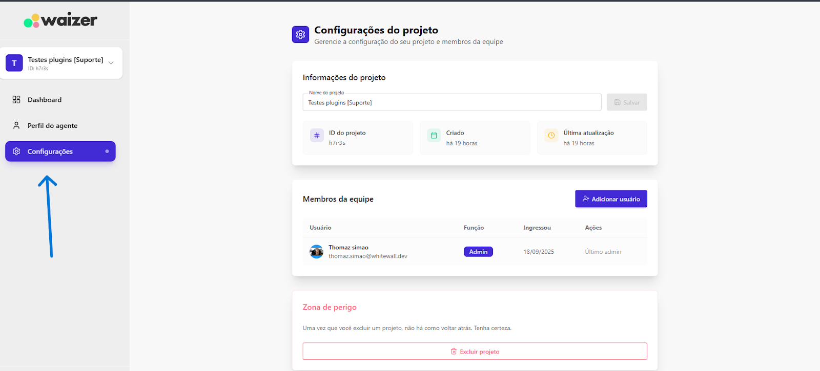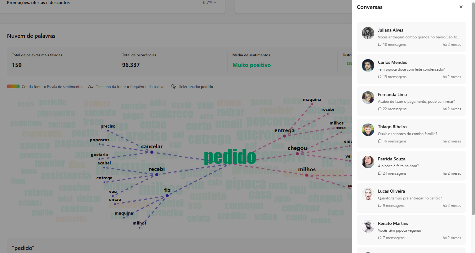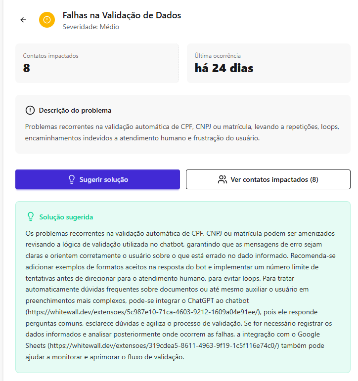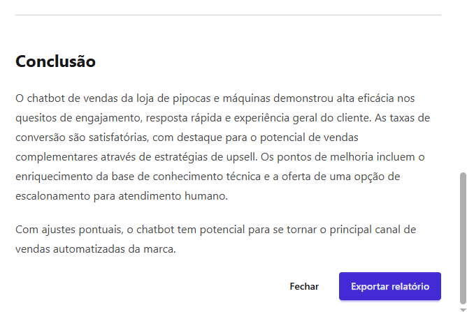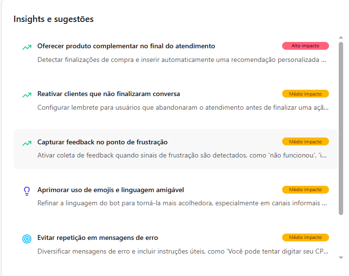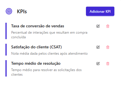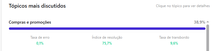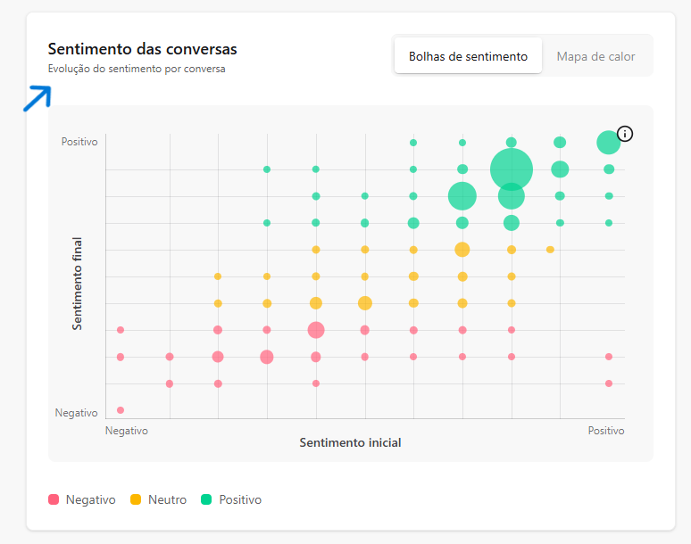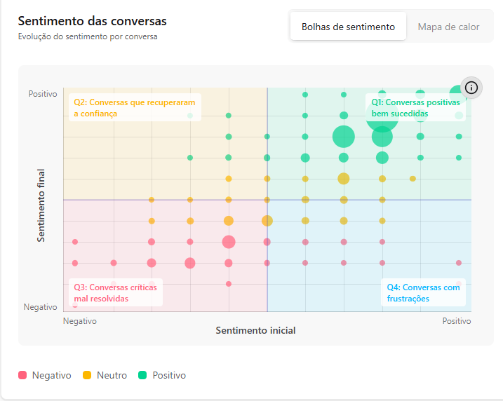 [Extensão] Documentação Waizer 23 de setembro de 2025 21:24 Atualizado Índice: Introdução Principais funcionalidades Casos de uso Instalação e configuração Aba Dashboard Agente de IA no Waizer Total de conversas Taxa de erro Taxa de transbordo Índice de resolução Score de performance Sentimento das conversas Quadrante de sentimentos Mapa de calor Problemas e falhas Tópicos mais discutidos Insights e sugestões Nuvens de palavras Aba - Perfil do agente KPIs Integrações Integração MCP (Model Context Protocol) Aba - Configurações Ajuste de cor do painel Suporte IntroduçãoUm atendimento de qualidade vai muito além da velocidade.O verdadeiro diferencial está na capacidade de entregar soluções completas já na primeira interação. Seja por meio da automação ou do atendimento humano, o objetivo é claro: garantir processos ágeis e proporcionar uma experiência satisfatória desde o primeiro contato.Cada negócio possui sua própria dinâmica, desafios e metas. Por isso, acompanhar métricas em tempo real é essencial para identificar oportunidades, ajustar estratégias rapidamente e alcançar resultados consistentes e mensuráveis.Apesar dos avanços tecnológicos, muitos atendimentos ainda enfrentam problemas comuns: Processos lentos. Loops de conversação. Respostas repetitivas. Falhas na compreensão da intenção do cliente. Esses erros frustram o usuário e impactam diretamente a percepção da sua marca.A experiência do cliente é um dos pilares mais importantes para qualquer negócio. É preciso refletir: O cliente está satisfeito? Conseguiu resolver o problema com rapidez? O bot compreendeu sua intenção com clareza? Foi com esse propósito que nasceu o Waizer: uma solução desenvolvida para traduzir e interpretar as interações do seu chatbot ou agente, garantindo conversas mais eficientes e resultados concretos para o seu negócio. Principais funcionalidadesMonitoramento de emoçõesAcompanhe em tempo real como os clientes se sentem ao interagir com o seu chatbot ou agente, oferecendo uma experiência mais humanizada e eficaz.Relatórios personalizadosAcesse análises detalhadas com informações estratégicas, incluindo: Volume total de interações. Principais problemas e tópicos levantados. Erros recorrentes. Taxas de transbordo para atendimento humano. Sugestões e insights estratégicosReceba insights práticos e acionáveis, baseado totalmente nos KPIs da sua empresa, como: Nuvem de palavras com os termos mais citados. Tópicos de maior recorrência. Recomendações para otimizar a jornada do cliente. Dicas para aumentar retenção e satisfação. Agente de IA da WaizerO Agente de IA da Waizer amplia a eficiência da análise e execução de ações. Busca rápida de dadosEncontre informações específicas em segundos, sem necessidade de navegar por relatórios complexos. Compreensão avançadaAnálise de dados em profundidade, compreendendo padrões ocultos, gargalos de atendimento e oportunidades de melhoria. Casos de uso Suporte ao cliente: redução do tempo médio de atendimento e identificação de gargalos. Vendas: mapeamento de objeções e otimização de scripts comerciais. Pesquisa de mercado: identificação de tendências com base nas interações. Qualidade de serviço: monitoramento do sentimento e da satisfação dos clientes. Instalação e configuração Acesse a Blip Store. Localize a extensão Waizer. Clique em Instalar no bot desejado (Router ou Sub-bot). Após a instalação, a tela que importará os dados estará disponível. Ao clicar em iniciar, a importação começa, podendo ter a duração de até 1 hora para a conclusão.Assim que completar, será indicada no painel.Clique em Ir para Dashboard.O dashboard já retorna todos os dados disponíveis para o bot.Atenção: Quando o projeto é criado na Blip, também é criado na plataforma https://app.waizer.ai onde também pode ser acessado.Aba DashboardNeste campo é possível filtrar os dados. Por padrão, vem filtrado nos últimos 30 dias. Para efeito comparativo de todos os gráficos, recomendamos que o filtro seja determinado em um tempo específico. A análise será realizada a partir do último período. Agente de IA no Waizer Busca de dados específicos de forma rápida. Compreensão dos dados e análises de forma mais aprofundada. Direcionamento de ações e comandos para a plataforma Blip e outras ferramentas que estejam integradas ao dashboard. É possível conversar em tempo real. Total de conversasO total de conversas indica a quantidade de interações registradas pelo bot em um determinado período.Como interpretar Esse número mostra o volume de atendimentos realizados, incluindo todas as mensagens trocadas entre clientes e o bot. O card apresenta também a variação em relação ao período anterior (aumento ou redução no número de conversas). Por que é importante? Permite acompanhar a demanda geral do canal de atendimento. Ajuda a identificar picos de uso em campanhas, lançamentos de produtos ou períodos sazonais. Serve como base de comparação para outros KPIs, como Taxa de erro, Índice de resolução e Taxa de transbordo. Taxa de erroA taxa de erro mostra o percentual de conversas que tiveram falhas durante a interação com o bot. Esses erros podem estar relacionados a: Problemas de processamento no fluxo. Falhas em integrações externas. Mensagens que não foram compreendidas pelo bot. Como interpretar Taxa baixa (ideal) → indica que o bot está funcionando de forma estável e compreendendo a maioria das interações. Taxa alta → sinaliza que há muitos erros técnicos ou de configuração, afetando a experiência do usuário Por que é importante? Reflete a saúde operacional do bot. Impacta diretamente na satisfação do cliente e no Índice de Resolução. Ajuda a identificar rapidamente se há instabilidades técnicas ou falhas no design do fluxo Taxa de transbordoA taxa de transbordo representa o percentual de conversas que prec