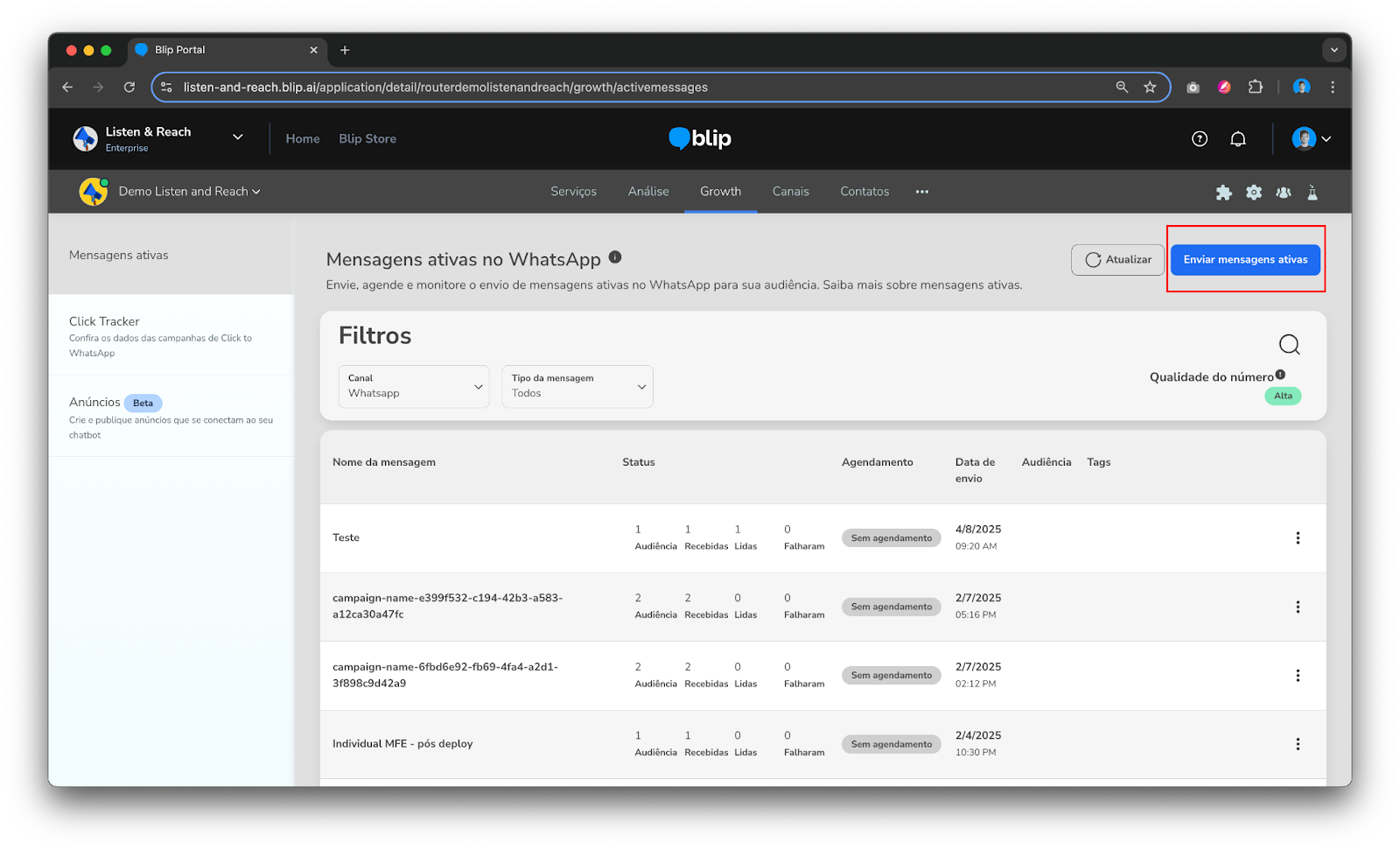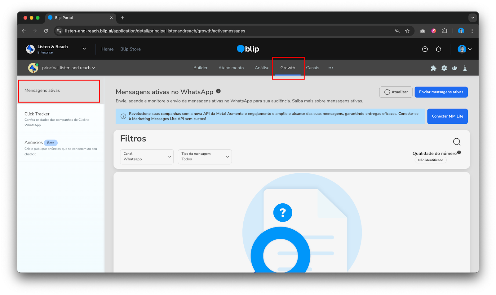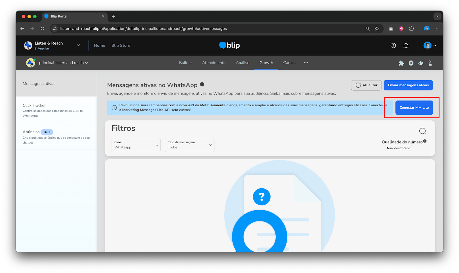 Marketing Messages Lite API 30 de setembro de 2025 19:27 Índice Criar campanhas de mensagem de marketing Como ativar o MM Lite Enviar mensagens ativas no Portal usando MM Lite API MM Lite via Active Campaign API O que é o Marketing Messages Lite API? O Marketing Messages Lite API (MM Lite API) é uma solução da Meta que utiliza da forma padrão de envio de mensagens que as marcas estão acostumadas via Cloud Api, porém, trazendo um algoritmo e inteligencia de otimização da própria Meta. Esse algoritmo utiliza os sinais disponíveis como informações que a marca já possa compartilhar com a Meta ou ações dos contatos como, por exemplo, terem visitado a página do Instagram ou Facebook da marca. Seu objetivo é aumentar o ROI das campanhas e melhorar o alcance das mensagens de marketing da marca para números com alta propensão de engajamento. A precificação segue os mesmos valores praticados para as mensagens enviadas para Cloud API, porém, com os benefícios de possibilitar um aumento de ROI e de taxa de entrega. Além disso, o processo de disparo na plataforma da Blip é similar ao realizado para Cloud API. Como ativar o MM Lite A integração precisa ser feita por um usuário do Blip com acesso ao Business Manager que deverá realizar os passos abaixo. Caso os colaboradores da empresa não tenham acesso a Blip, basta conceder acesso para realizar a integração, podendo serem removidos depois. Acesse a área de Growth do portal e na sequência a opção “Mensagens ativas” no menu lateral. O primeiro passo é conectar a MM Lite API selecionando o botão “Conectar MM Lite API” destacado na imagem abaixo. Com isso, o pop-up do fluxo de ativação para MM Lite API será aberto e basta seguir os passos. Verifique se a primeira tela do pop-up diz respeito a Marketing Messages Lite API e conceda permissão para o compartilhamento das informações entre Blip e Meta. Na sequência será preciso selecionar o negócio a ser conectado e depois os números de WhatsApp, iniciando pela etapa abaixo do pop-up. Na próxima tela, selecione uma ou mais contas de anúncio. Por último, revise as informações antes de clicar em continuar. Importante: O próximo passo depende do tipo de WABA que o negócio tiver. Para integrar com a MM Lite API é obrigatório que as WABAs sejam do tipo compartilhada. Caso a WABA do seu negócio já seja desse novo modelo, a próxima etapa não será exibida durante o processo de integração. Porém, no caso de WABAs do tipo On-Behalf-Of (OBO) será necessário realizar a migração e para isso basta seguir os passos de aceite que serão apresentados conforme imagem abaixo: Quando uma migração de WABA é realizada para o modelo compartilhado, o negócio passa a ter acesso à WABA e não somente à Blip, dando diversas vantagens de gestão: acompanhar a qualidade dos números, solicitar selo de conta oficial, configurar catálogo e flows sem precisar abrir ticket para o suporte da Blip, criar templates de mensagens e editar informações de perfil.No entanto, o negócio passa também a conseguir excluir WABAs e/ou números, o que é um processo irreversível; por isso, é de suma importância ter atenção ao realizar operações dentro da WABA. A última etapa de integração com a API consiste em revisar as informações e dar o aceite final como mostrado na imagem abaixo. Uma vez realizado o procedimento de integração, a Meta considera um prazo em torno de 24 horas para sincronização do processo e efetivação da integração com o MM Lite. Durante esse período de latência, os disparos de marketing messages serão automaticamente enviados via Cloud API, garantindo a continuidade das campanhas. Após esse período, os usuários que já estiverem autenticados na MM Lite API não terão mais a opção de envio por meio da Cloud API. Enviar mensagens ativas no Portal usando MM Lite API Para enviar mensagens utilizando a MM Lite API acesse a área de Marketing do seu chatbot, acesse a opção Mensagens ativas no menu e na sequência clique em "Enviar mensagem ativa”. Uma vez conectada a MM Lite API, o processo de configuração da campanha segue o mesmo processo e etapas do Cloud API. Definição de audiência É possível selecionar um disparo individual onde se insere um único número ou um disparo em massa fazendo upload de um arquivo CSV com todos os números Conteúdo Na utilização de MM Lite API é contemplada a possibilidade de se utilizar todos os templates e modelos já aprovados para Cloud API. Para informações mais detalhadas sobre as etapas em comum das APIs clique aqui. Relatórios e dados Assim como no disparo de Cloud API, é possível acompanhar o status de entrega das mensagens na listagem das campanhas de Growth. Para isso selecione o menu “ações” para a campanha que deseja acompanhar os resultados. Feito isso será possível tomar duas ações: fazer download do relatório ou ver detalhes da performace. A primeira opção segue o mesmo tipo de dados e formato de relatório utilizado para Cloud API. No caso de analisar performance algumas informações já serão exibidas em tela conforme imagem abaixo. MM Lite via Active Campaign API Para os clientes que realizam disparos de mensagens ativas diretamente por integração via API, basta seguir os passos de integração com a MM Lite API, conforme demonstrado neste artigo. Após a conclusão do processo, a plataforma da Blip identificará automaticamente a categoria do template utilizado e redirecionará os envios de mensagens ativas de marketing para a nova API nas campanhas subsequentes, sem necessidade de ajustes manuais. Artigos relacionados Como enviar notificações via API Active Campaign (Growth) Engaje usuários a iniciar conversas utilizando Ice Breakers no Instagram Relatório de Vendas O que é o Dashboard? Envio de Mensagens Ativas do WhatsApp no Blip Desk